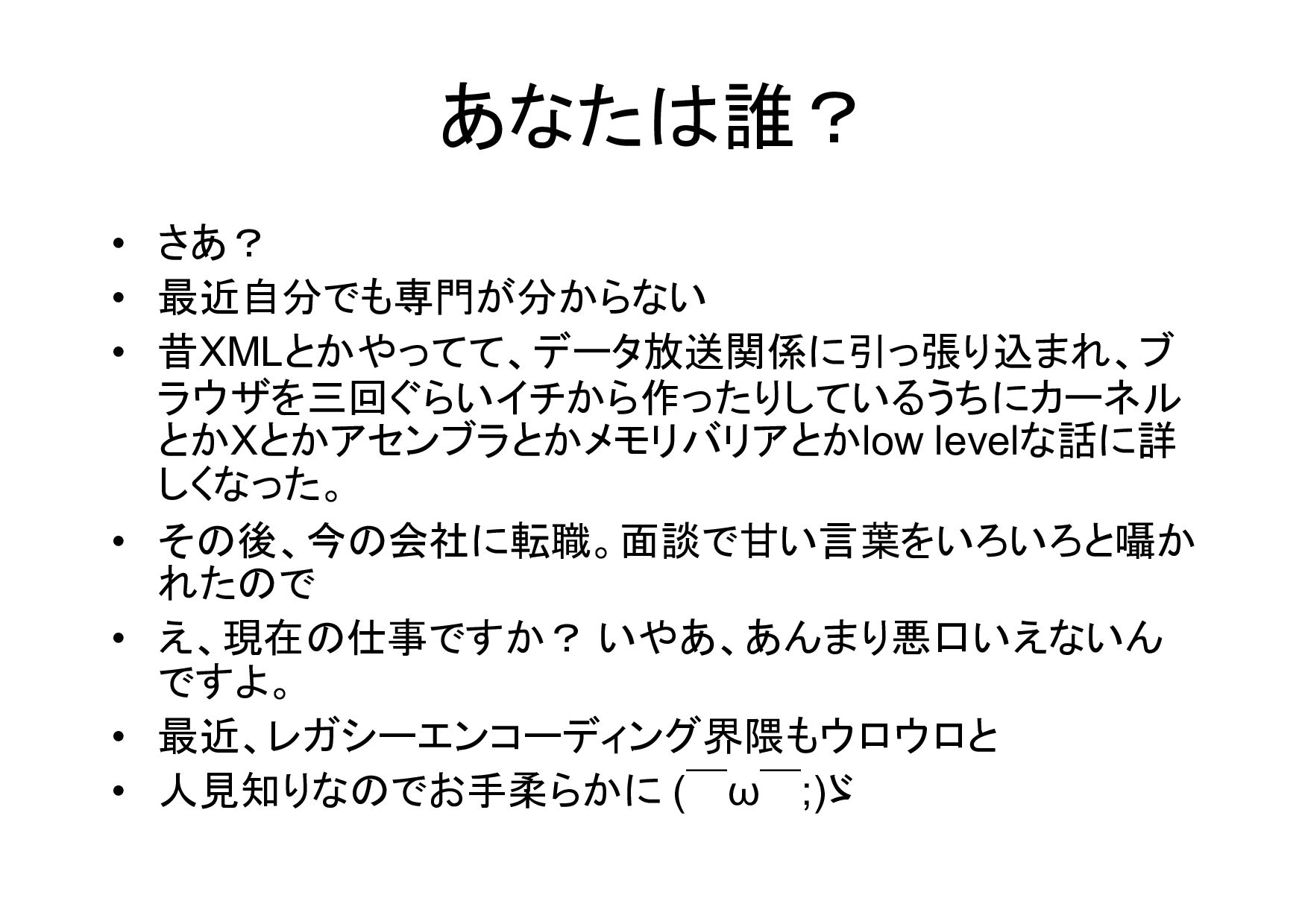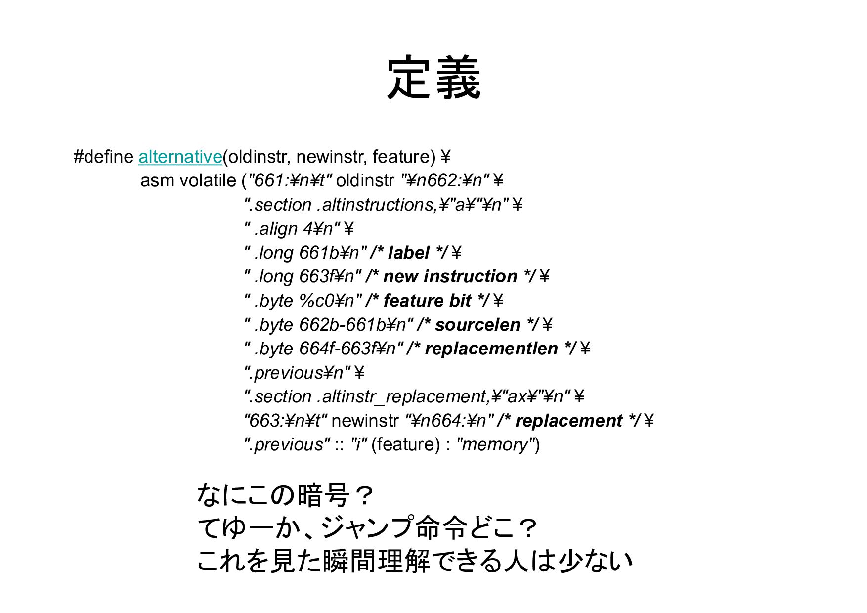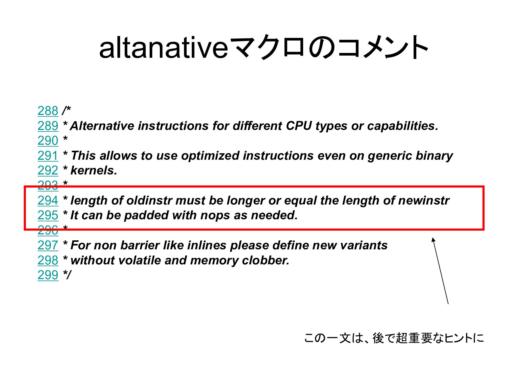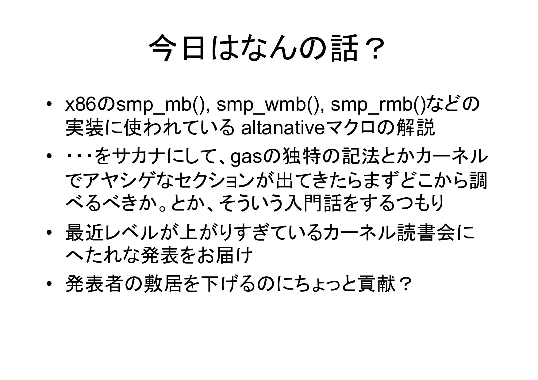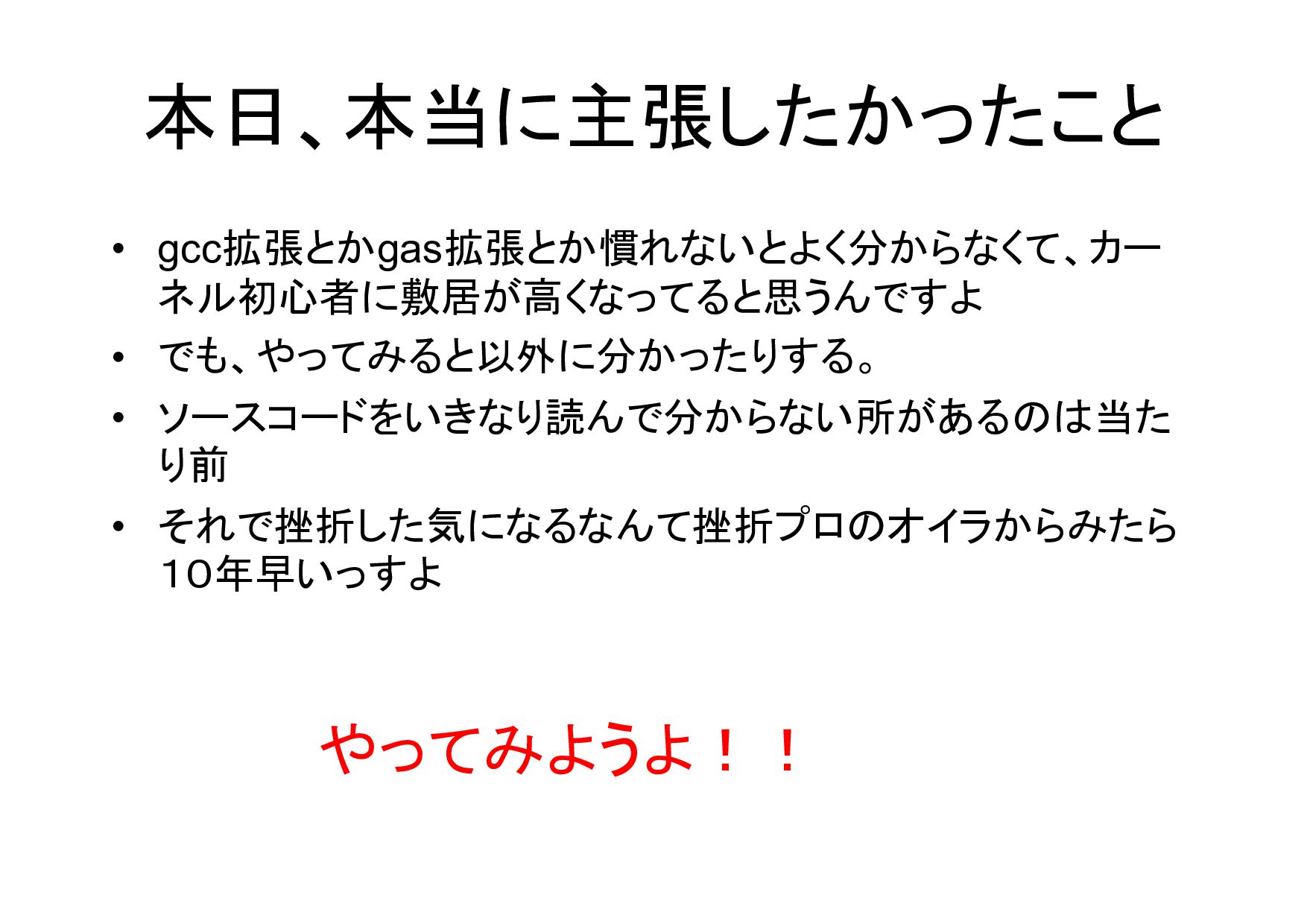 12 .altinstr_replacement 00000006 0804841c 0804841c 0000041c 2**0 CONTENTS, ALLOC, LOAD, READONLY, CODE 13 .fini 0000001a 08048424 08048424 00000424 2**2 CONTENTS, ALLOC, LOAD, READONLY, CODE 14 .rodata 00000008 08048440 08048440 00000440 2**2 CONTENTS, ALLOC, LOAD, READONLY, DATA 15 .altinstructions 00000017 08048448 08048448 00000448 2**2 CONTENTS, ALLOC, LOAD, READONLY, DATA さっきの、なんちゃって main.c をコンパイルして objdump a.out 中でのセクションのファイルオフセットとサイズが分かるので・・・