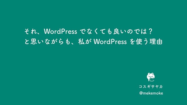 ͦΕɺ8PSE1SFTTͰͳͯ͘ྑ͍ͷͰʁ ͱࢥ͍ͳ͕Βɺࢲ͕8PSE1SFTTΛ͏ཧ༝ ίεΪαϠΧ !NFLFNPLF