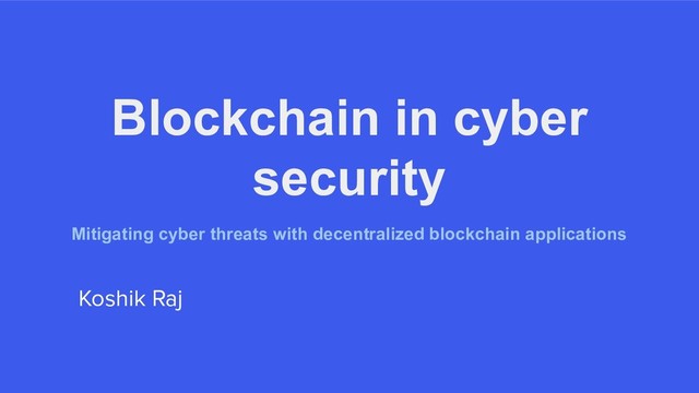 Workshop/talk on Applications of blockchain in Cyber Security at "Deep learning for Big Data and Cyber Security Applications" Conference