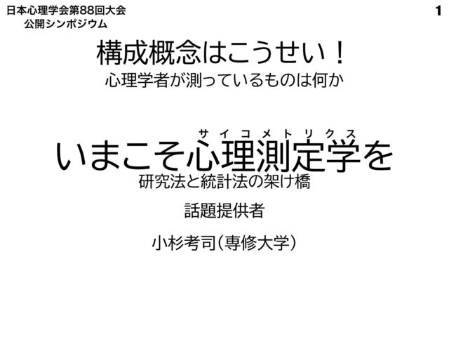日本心理学会第88回大会 SS-028 「構成概念はこうせい!心理学者が測っているものは何か」で話したスライドです。