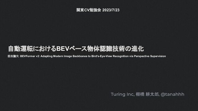 BEVFormerで高精度化している “FB-BEV provides a unified design that leverages both methods, promoting the benefits from each method with improved perception results while overcoming their limitations.’’ https://opendrivelab.com/e2ead/AD23Challenge/Track_3_NVOCC.pdf