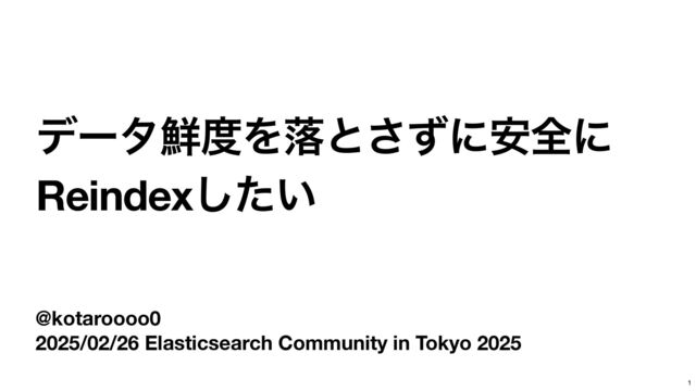 @kotaroooo0 2025/02/26 Elasticsearch Community in Tokyo 2025 σʔλΛམͱͣ͞ʹ҆શʹ Reindex͍ͨ͠ 1