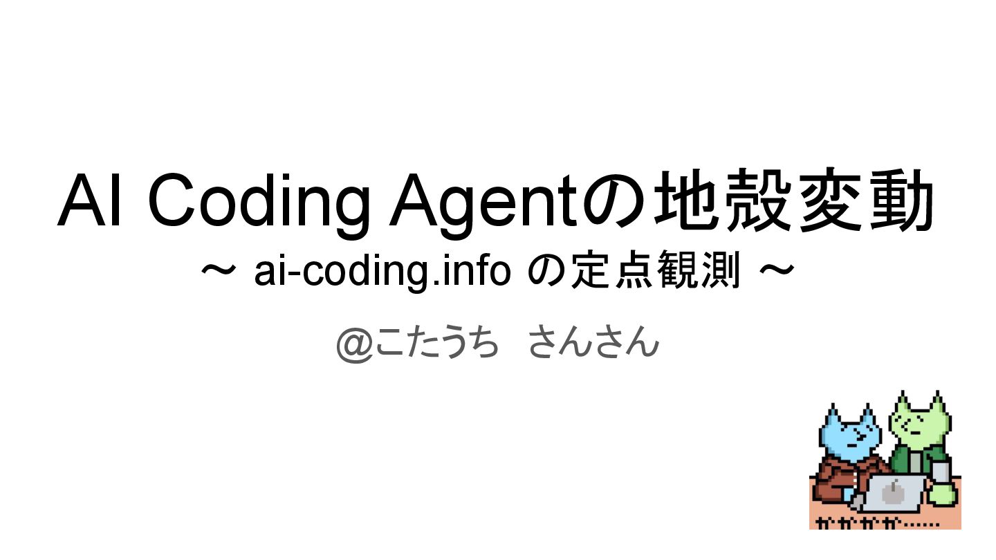 AI Coding Agentの地殻変動 ~ ai-coding.info の定点観測 ~ @こたうち さんさん