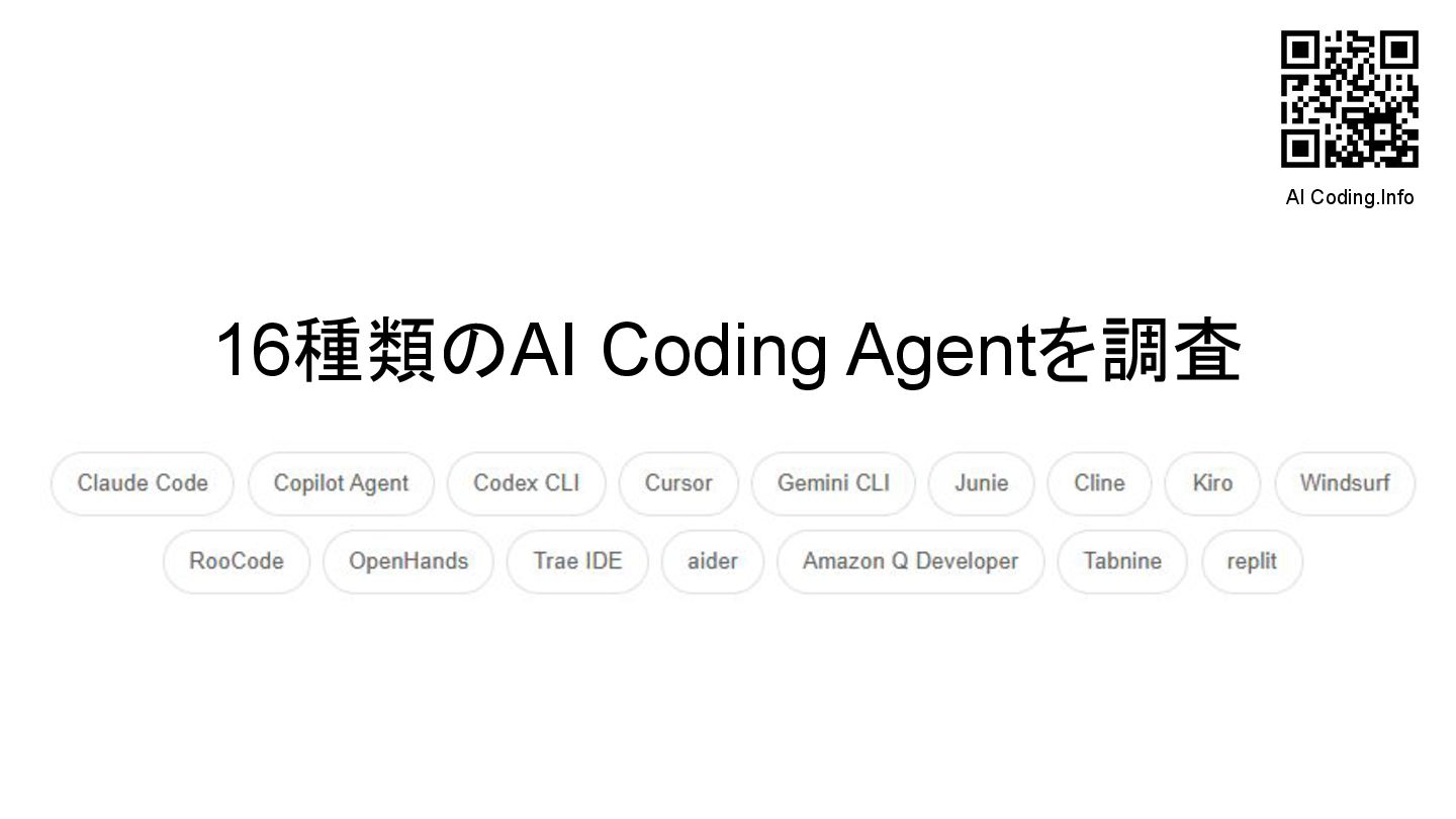 16種類のAI Coding Agentを調査 AI Coding.Info