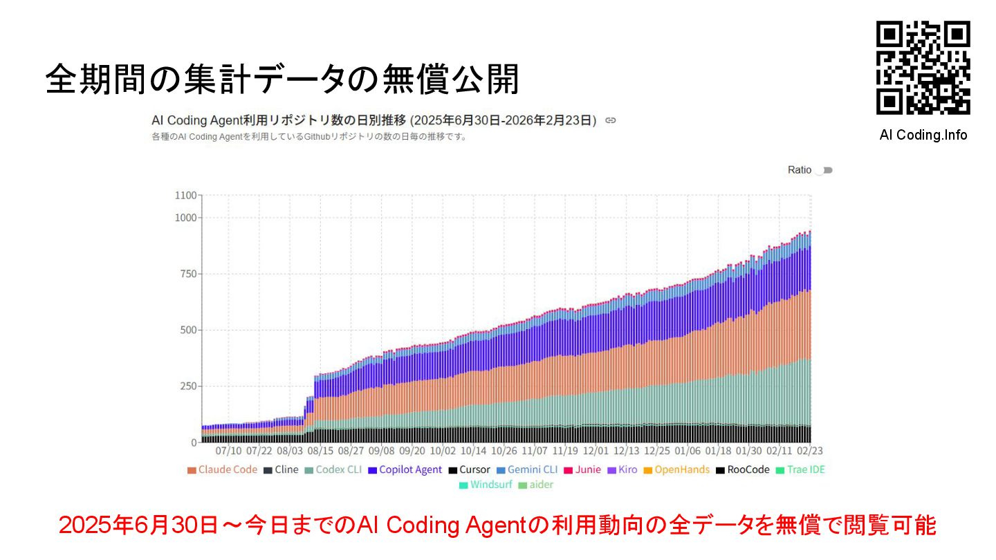 15万件超Githubリポジトリの AI Coding Agentの利用動向を 毎日集計 AI Coding.Info