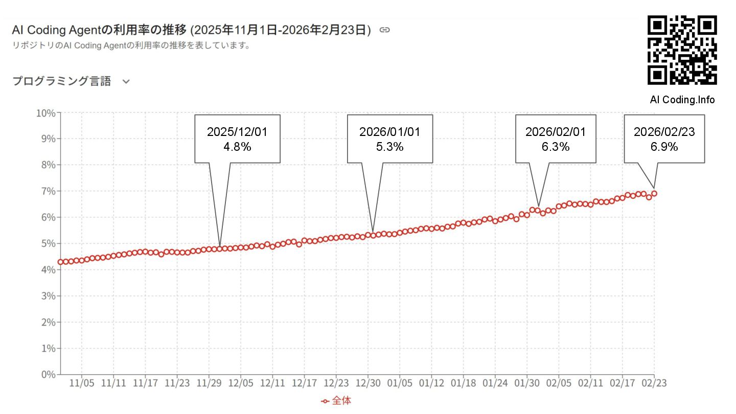 AI Coding Agentを利用しているリポジトリは6.9% AI Coding.Info