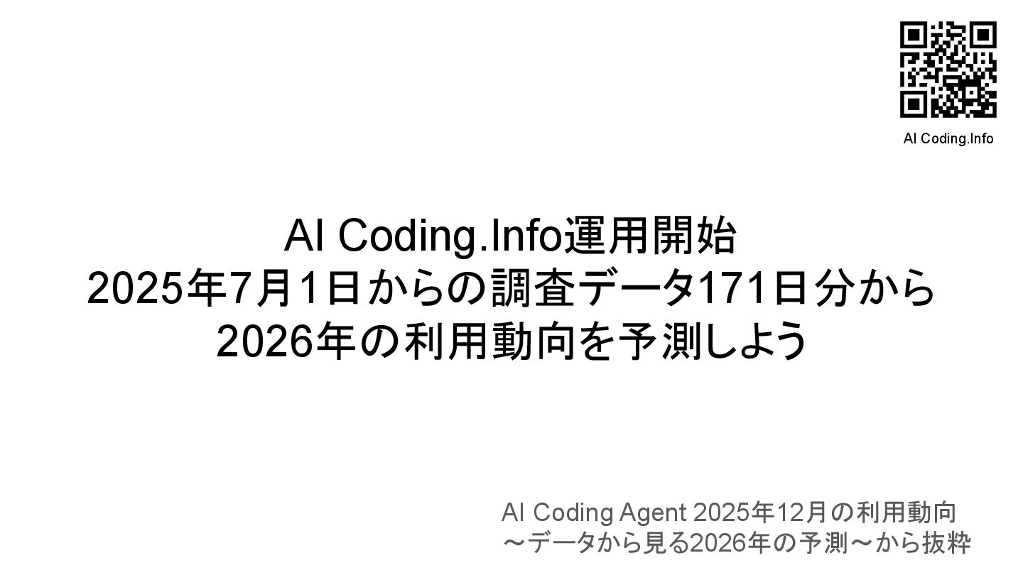 AI Coding.Info運用開始 2025年7月1日からの調査データ171日分から 2026年の利用動向を予測しよう AI Coding.Info AI Coding Agent 2025年12月の利用動向