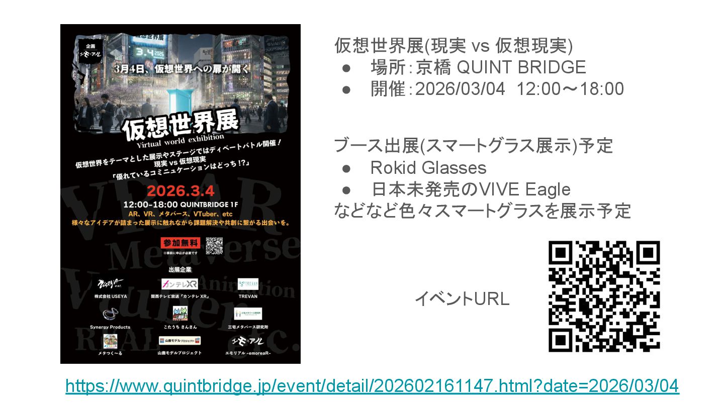仮想現実) • 場所:京橋 QUINT BRIDGE • 開催:2026/03/04 12:00~18:00 イベントURL https://www.quintbridge.jp/event/detail/202602161147.html?date=2026/03/04
