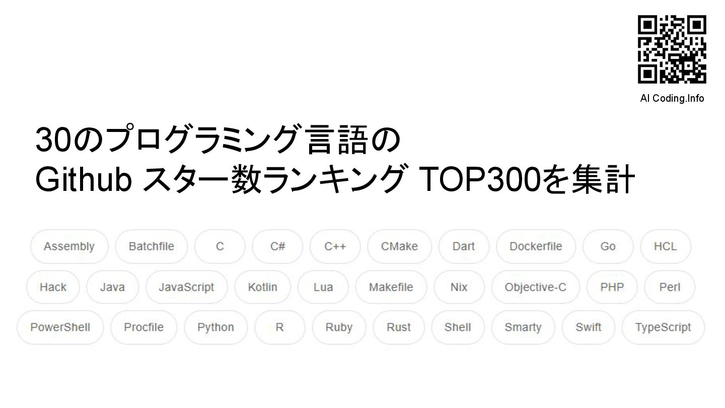 30のプログラミング言語の Github スター数ランキング TOP300を集計 AI Coding.Info