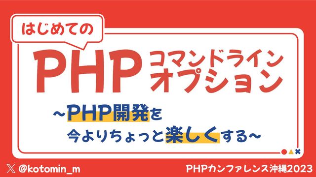 <file> [--] [args...] php [options] -r <code> [--] [args...] php [options] [-B <begin_code>] -R <code> [-E <end_code>] [--] [args...] php [options] [-B <begin_code>] -F <file> [-E <end_code>] [--] [args...] php [options] -S <addr>:<port> [-t docroot] [router] php [options] -- [args...] php [options] -a -a Run as interactive shell (requires readline extension) -c <path>|<file> Look for php.ini file in this directory 使ってみよう オプション「 -h 」