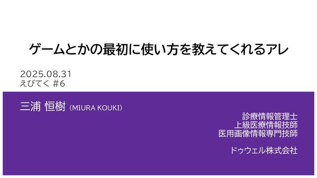 ゲームとかの最初に使い方を教えてくれるアレ 2025.08.31 えびてく #6 三浦 恒樹 (MIURA KOUKI) 診療情報管理士 上級医療情報技師