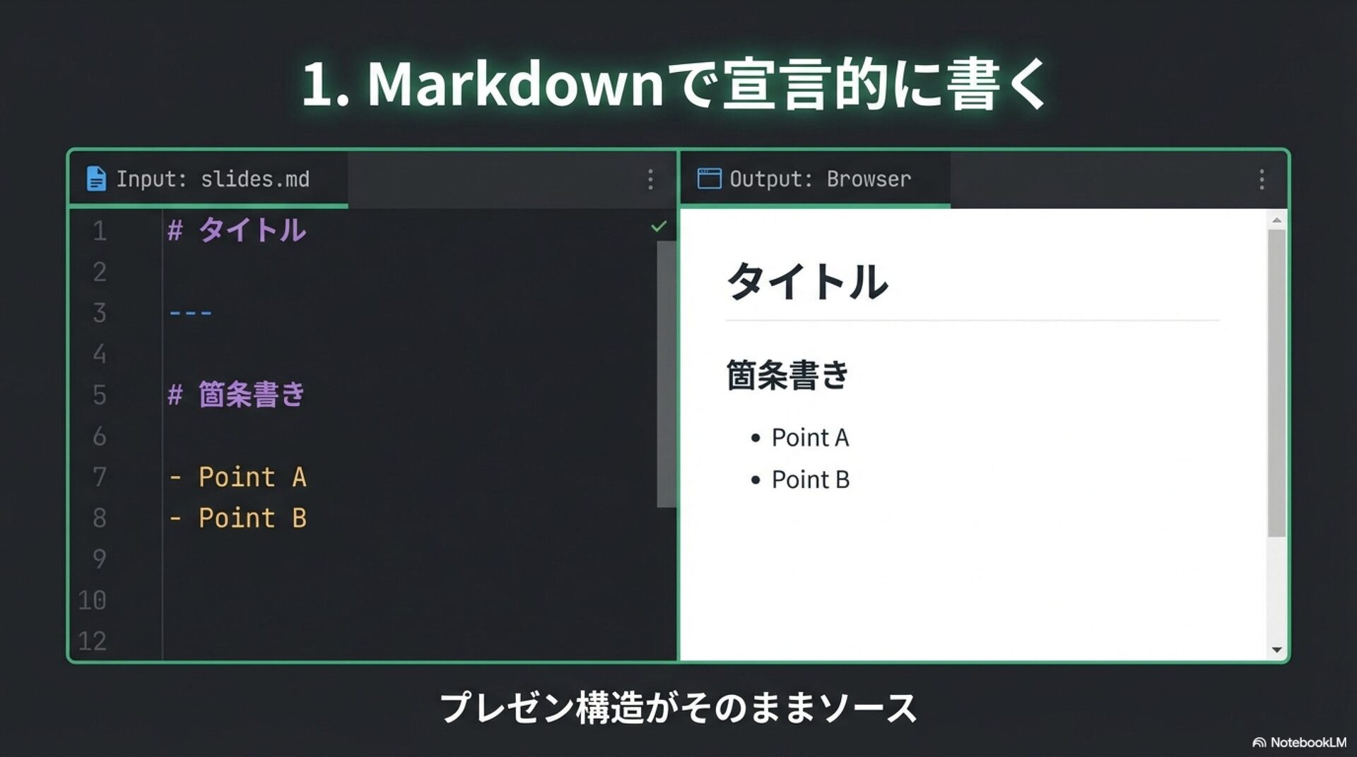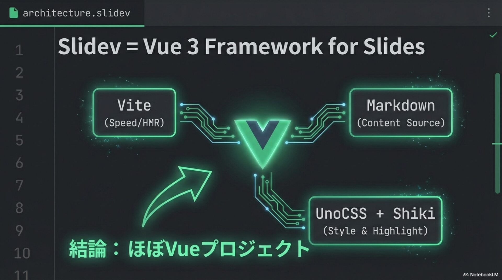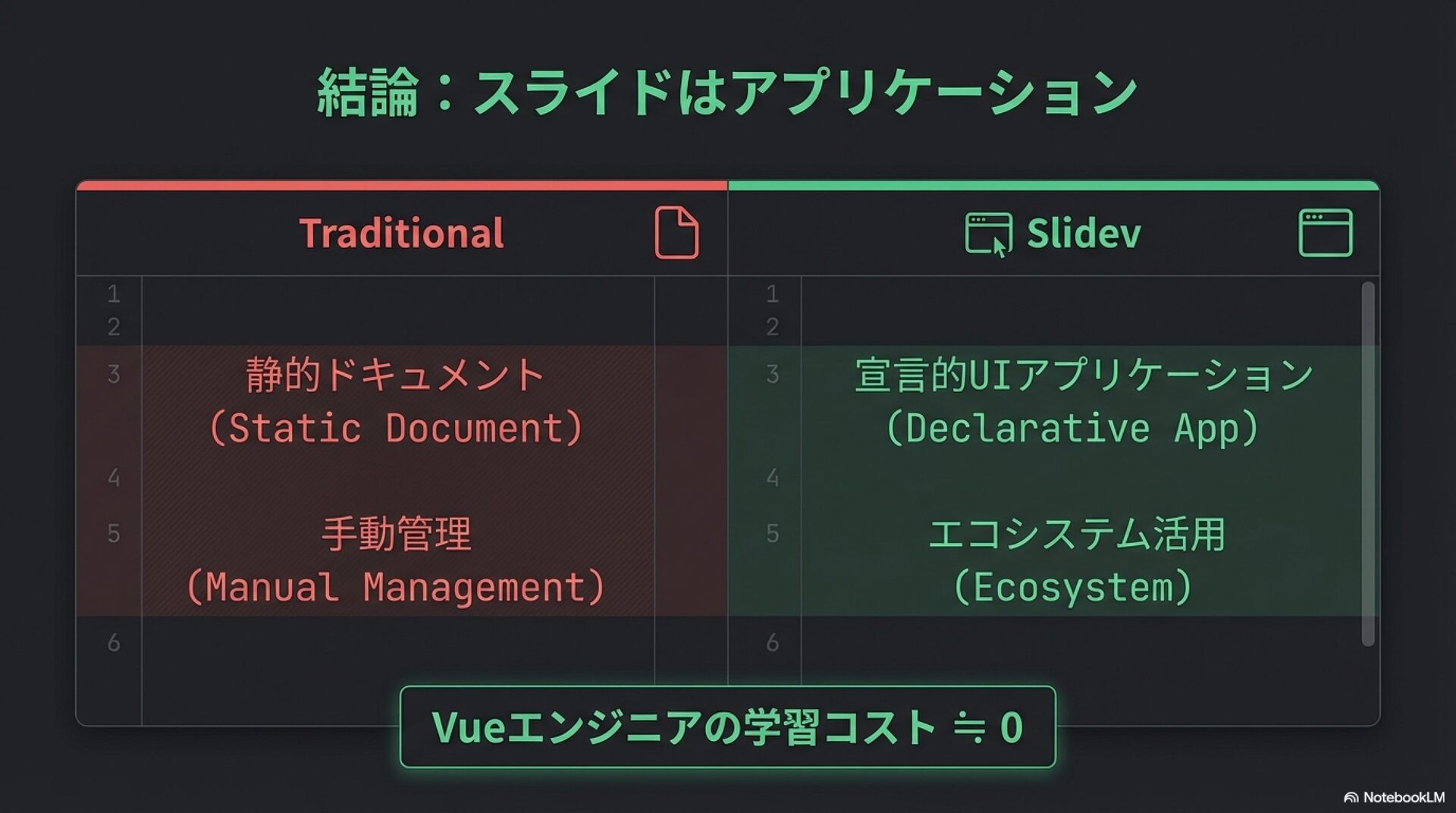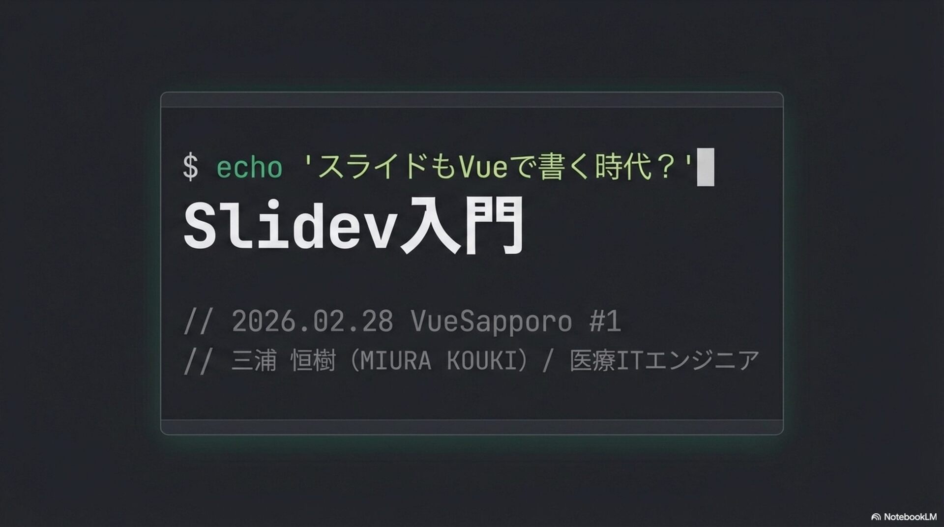 Vueで作成されたスライドプレゼンテーションツールSlidevの基本的な使い方についてのLT発表資料です。