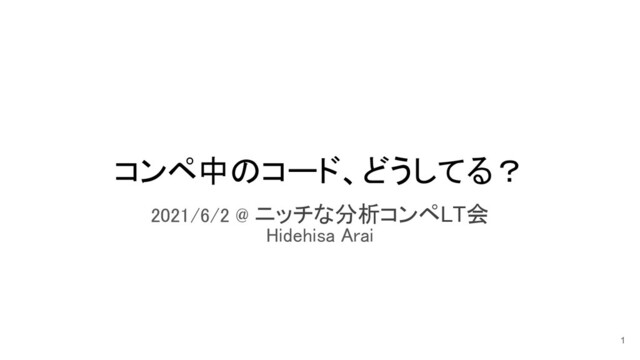 コンペ中のコード、どうしてる? 2021/6/2 @ ニッチな分析コンペLT会 Hidehisa Arai 1