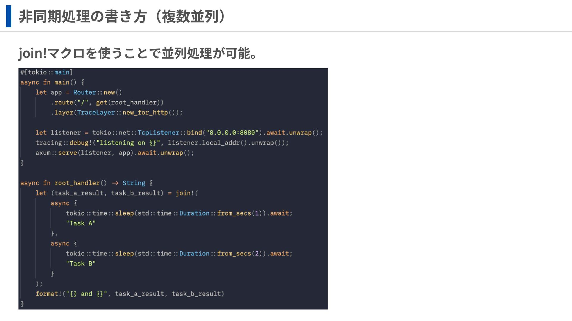 非同期処理の書き方(複数並列) join!マクロを使うことで並列処理が可能。