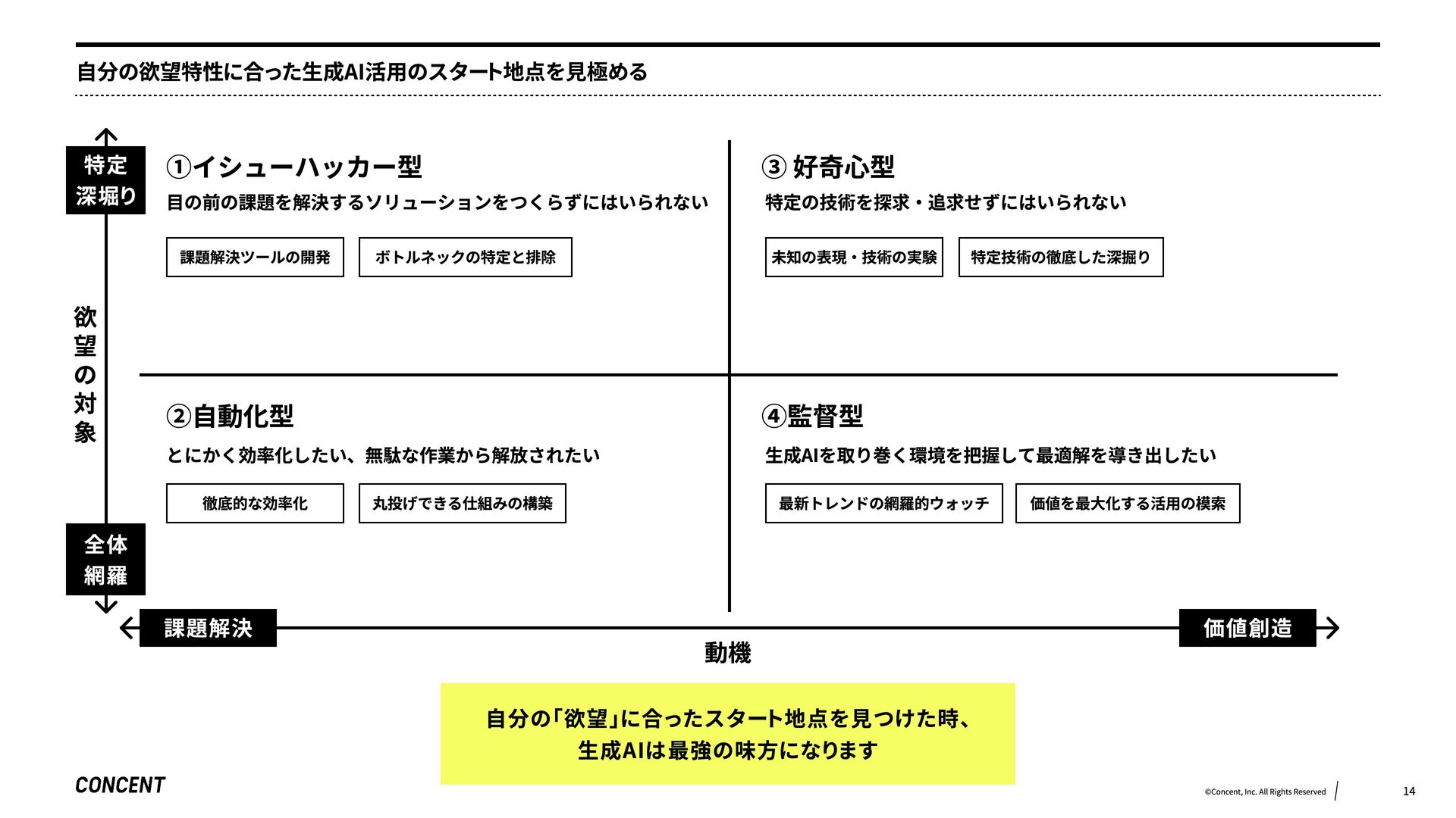本セッションでは、組織の「暗黙の期待値」から解放され、AIによって意図的な「余白」をつくる方法と、自身の「欲望」をエンジンにして未経験領域へ踏み出すためのアプローチを探ります。