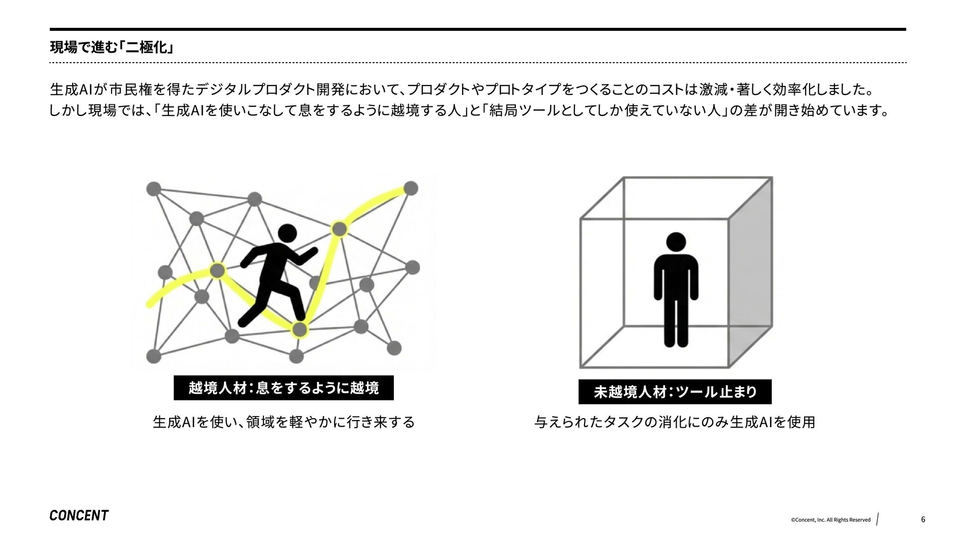 生成AIの登場により、デザインとエンジニアリングの境界を越えるコストは劇的に下がりました。しかし現場では、生成AIで軽やかに領域を「越境」する人と、ツールとしてしか使いこなせない人の二極化が進んでいます。その差はスキルではなく、心と時間の「余白」と、個人の「欲望」の形にあることが、組織のマネジメントをする中で見えてきました。