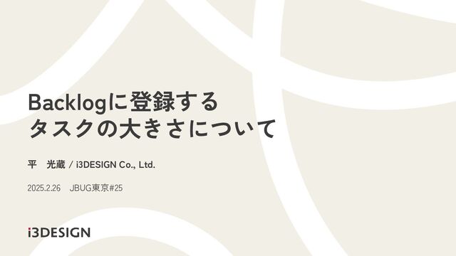 Backlogに登録する タスクの大きさについて 2025.2.26 JBUG東京#25 平 光蔵 / i3DESIGN Co., Ltd.