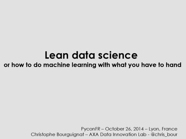 X, y = merge(in, f1, … fN) m = model(params) m.fit(X_train, y_train) preds = m.predict(X_test) perf = score(y_test, preds) load prepare merge train evaluate And you do that again, and again, and again, and again, and again, …. An Ocean Of Problems (but we like it)