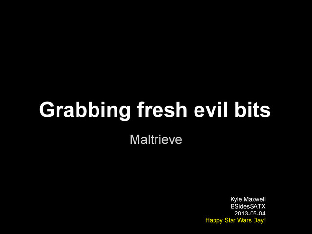 Grabbing fresh evil bits Maltrieve Kyle Maxwell BSidesSATX 2013-05-04 Happy