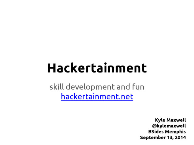 Hackertainment skill development and fun hackertainment.net Kyle Maxwell @kylemaxwell BSides