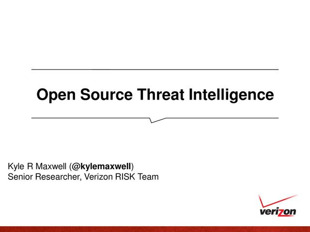 Threat Intelligence • Publicly available data from overt sources • Distinct from open-source software • But all software discussed today is FLOSS • Non-asset, non-vulnerability • In VERIS A4 terms: actor and action • Not investigation-focused but can support it • True intel is product of data and analysis • Generalizing slightly here to include raw-ish data • Focus on broadly gathering data, tools for analysis CISPA and other political or legislative issues are out-of-scope for this talk