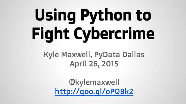 Using Python to Fight Cybercrime Kyle Maxwell, PyData Dallas April