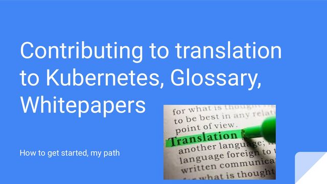 Contributing to translation to Kubernetes, Glossary, Whitepapers How to get