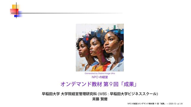 早稲田大学大学院経営管理研究科「NPOの経営」2025 冬のオンデマンド教材 第9回で使用したスライドです。