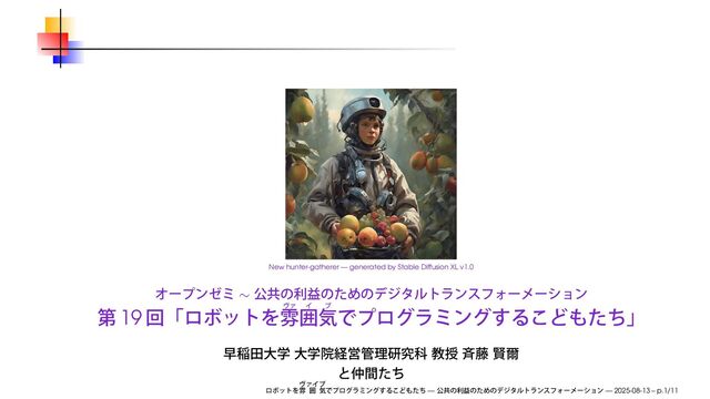 2025年8月13日(水)、オンラインで開催された、オープンゼミ 〜 公共の利益のためのデジタルトランスフォーメーション 第19回で使用したスライドです。