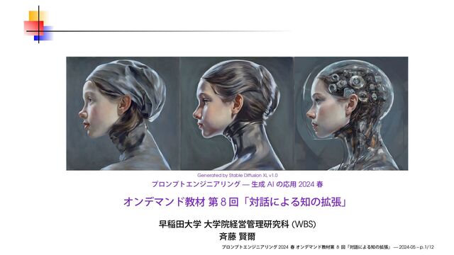 早稲田大学大学院経営管理研究科「プロンプトエンジニアリング ─ 生成AIの応用」2024 春のオンデマンド教材 第8回で使用したスライドです。