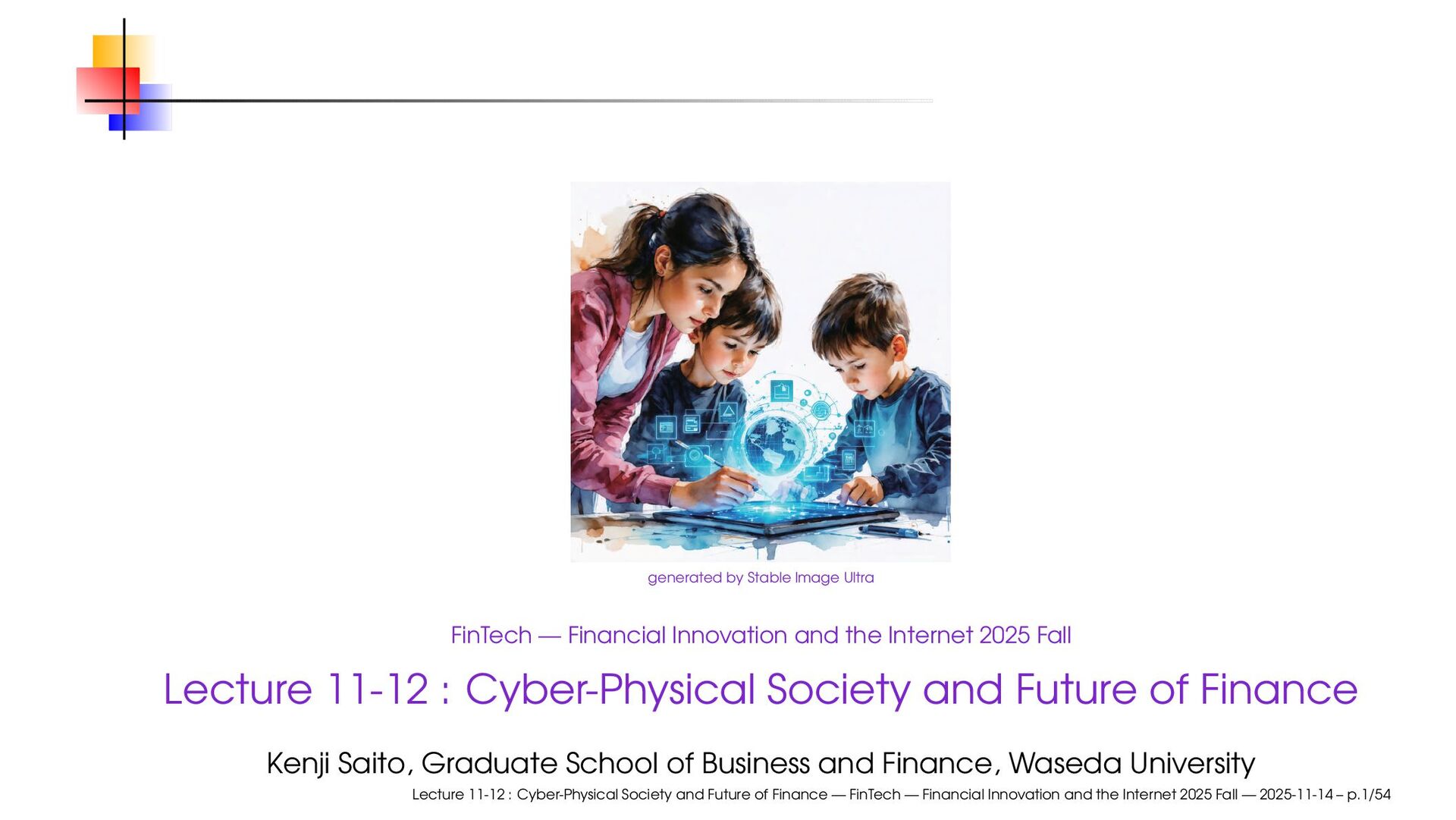 the Internet 2025 Fall Lecture 11-12 : Cyber-Physical Society and Future of Finance Kenji Saito, Graduate School of Business and Finance, Waseda University Lecture 11-12 : Cyber-Physical Society and Future of Finance — FinTech — Financial Innovation and the Internet 2025 Fall — 2025-11-14 – p.1/54