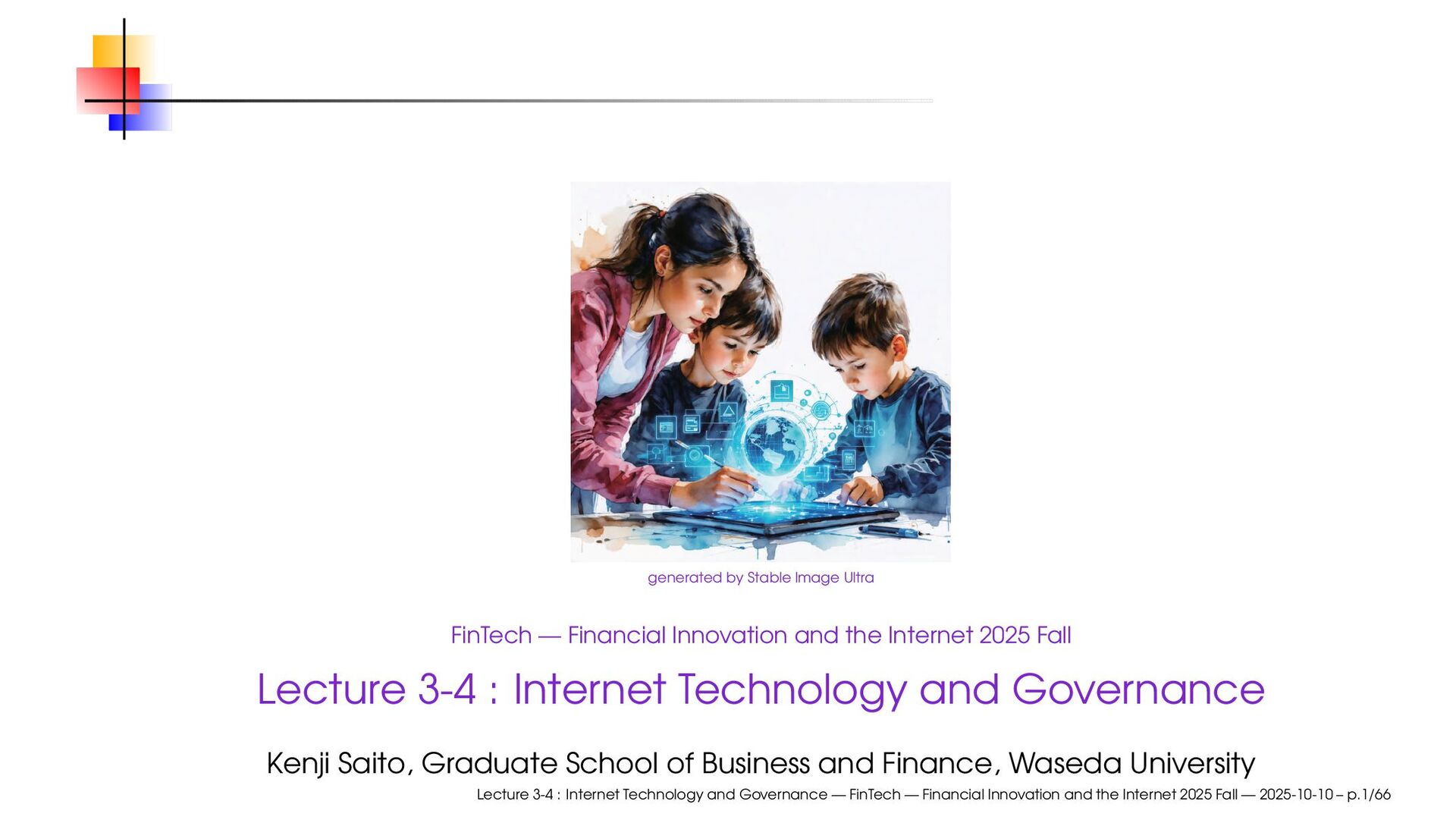 the Internet 2025 Fall Lecture 3-4 : Internet Technology and Governance Kenji Saito, Graduate School of Business and Finance, Waseda University Lecture 3-4 : Internet Technology and Governance — FinTech — Financial Innovation and the Internet 2025 Fall — 2025-10-10 – p.1/66