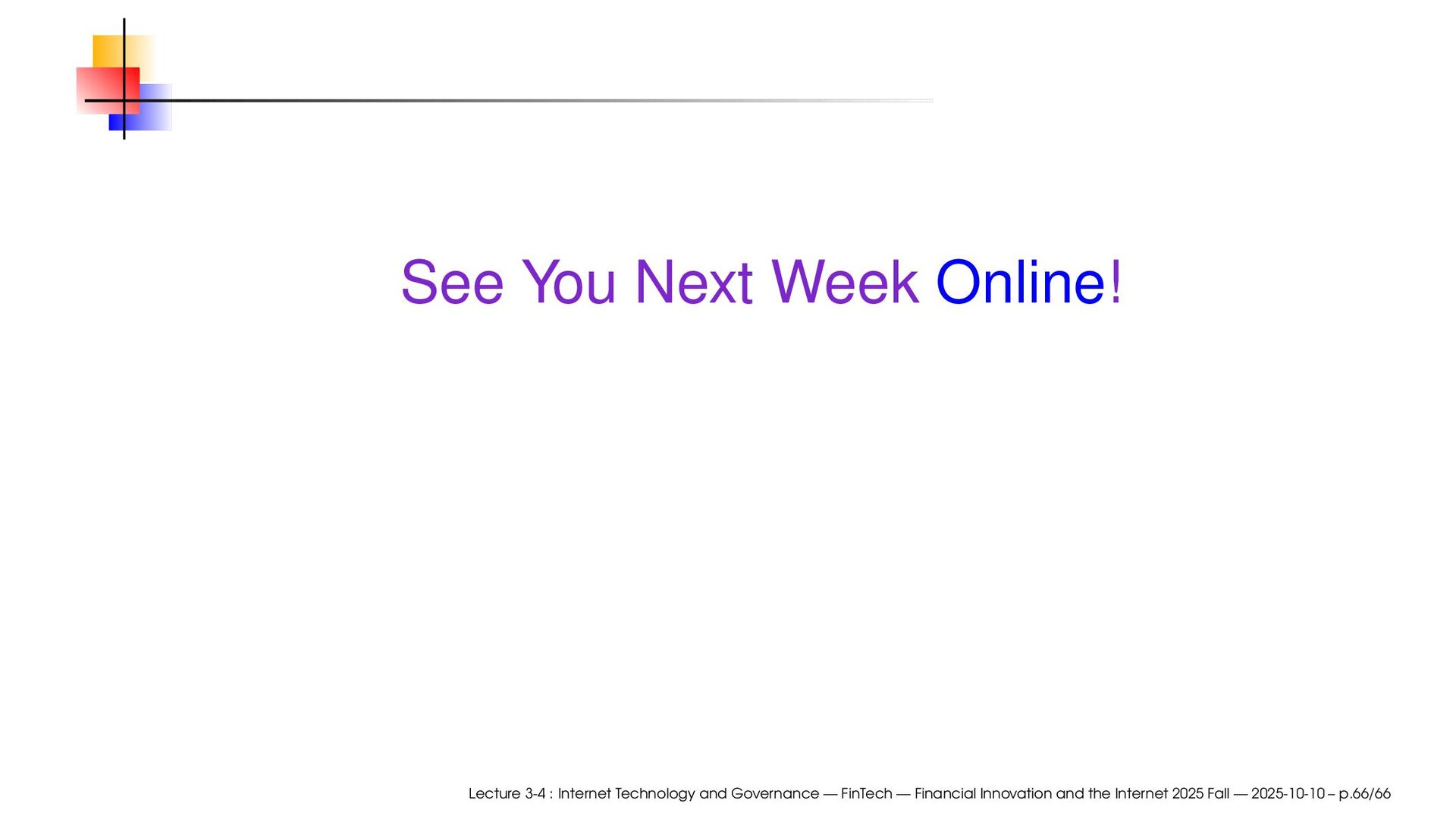 and Governance — FinTech — Financial Innovation and the Internet 2025 Fall — 2025-10-10 – p.66/66