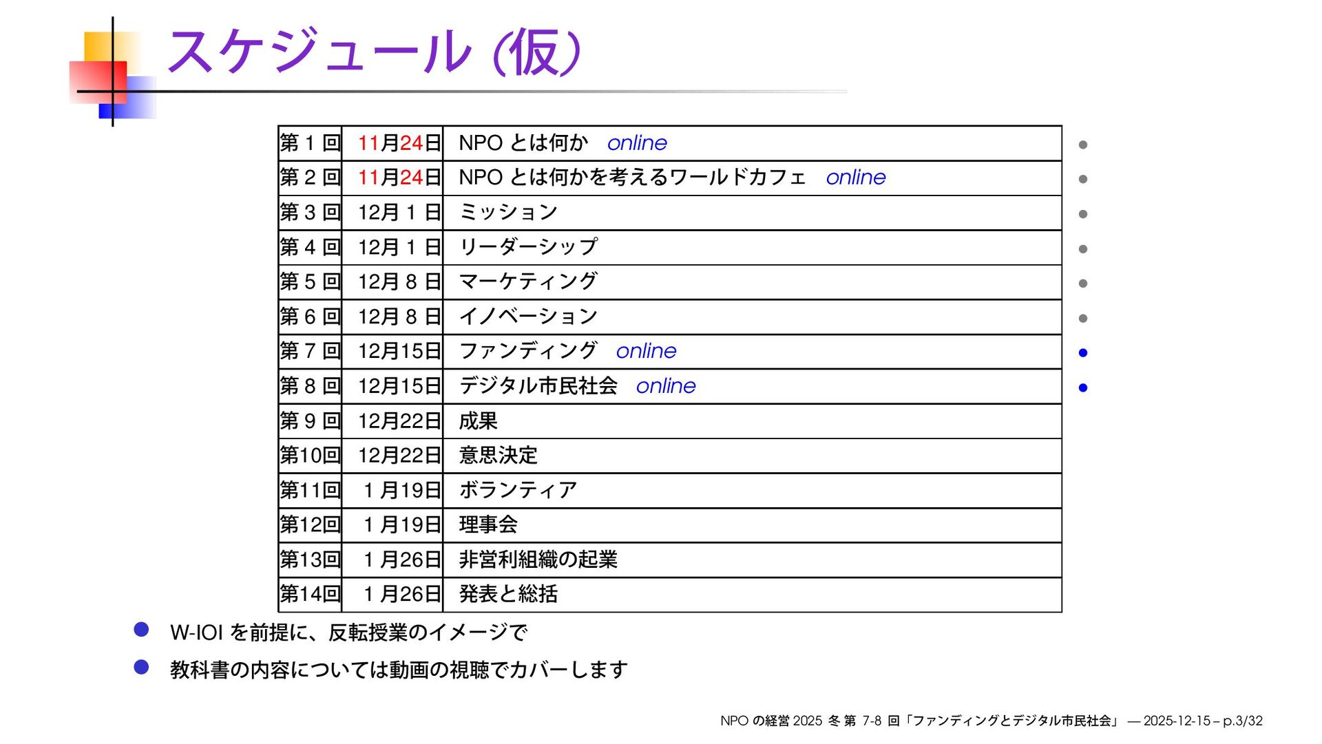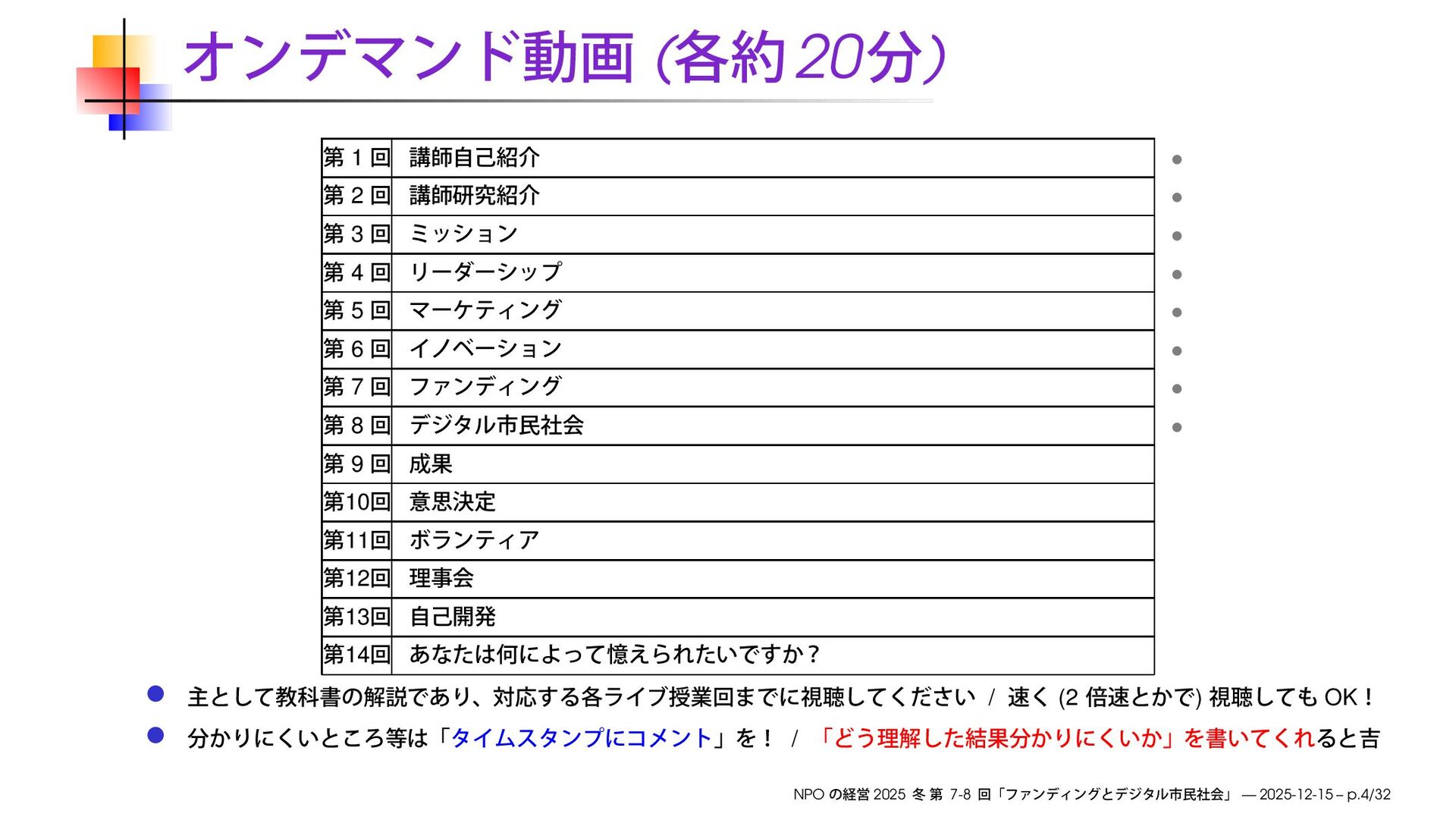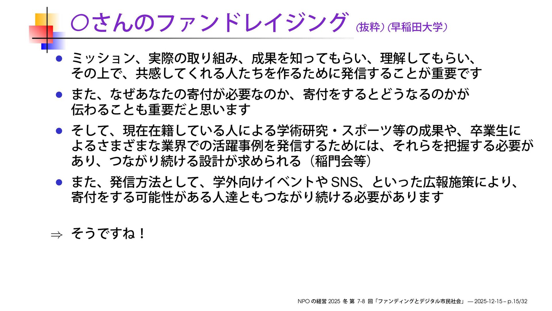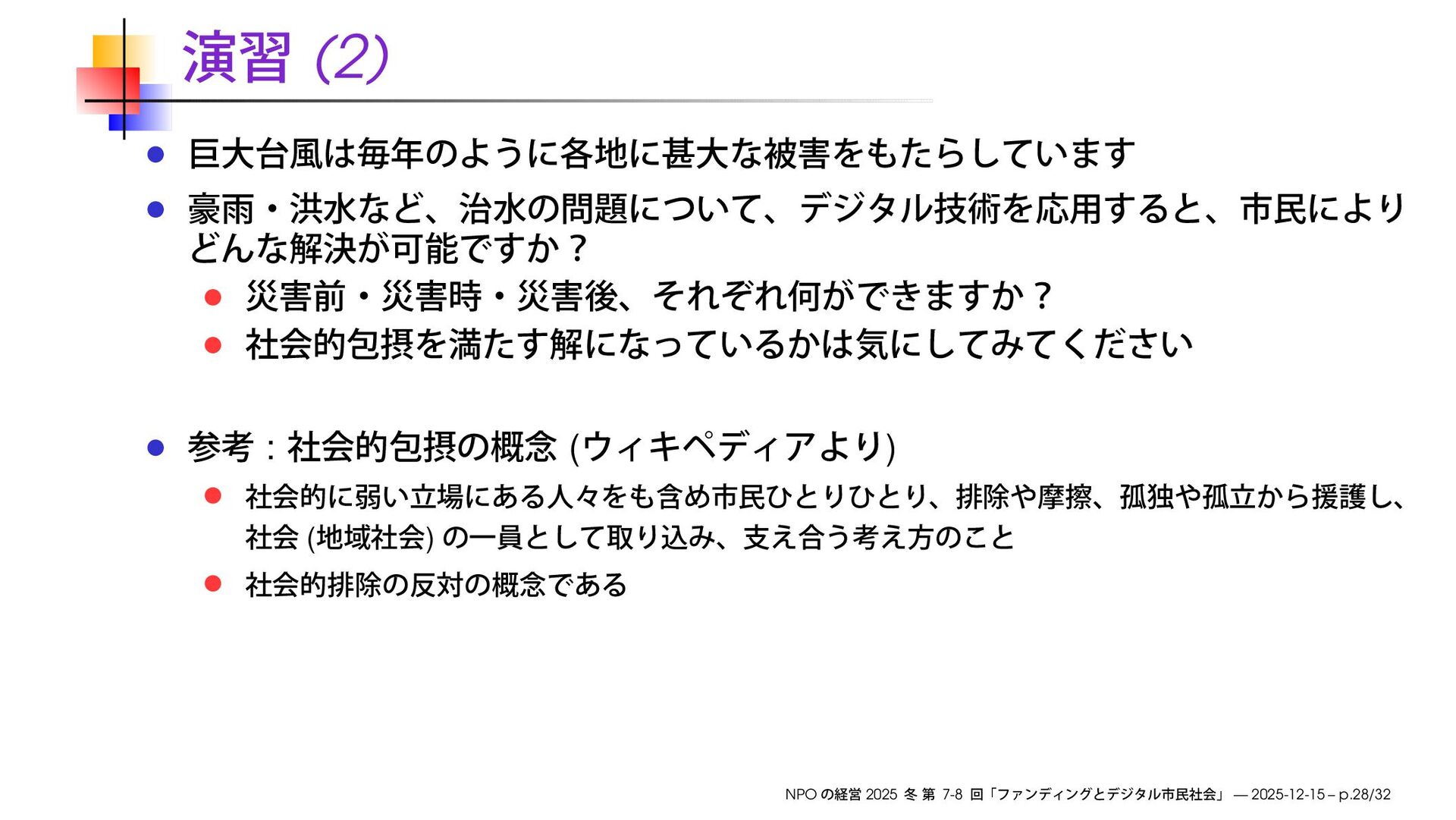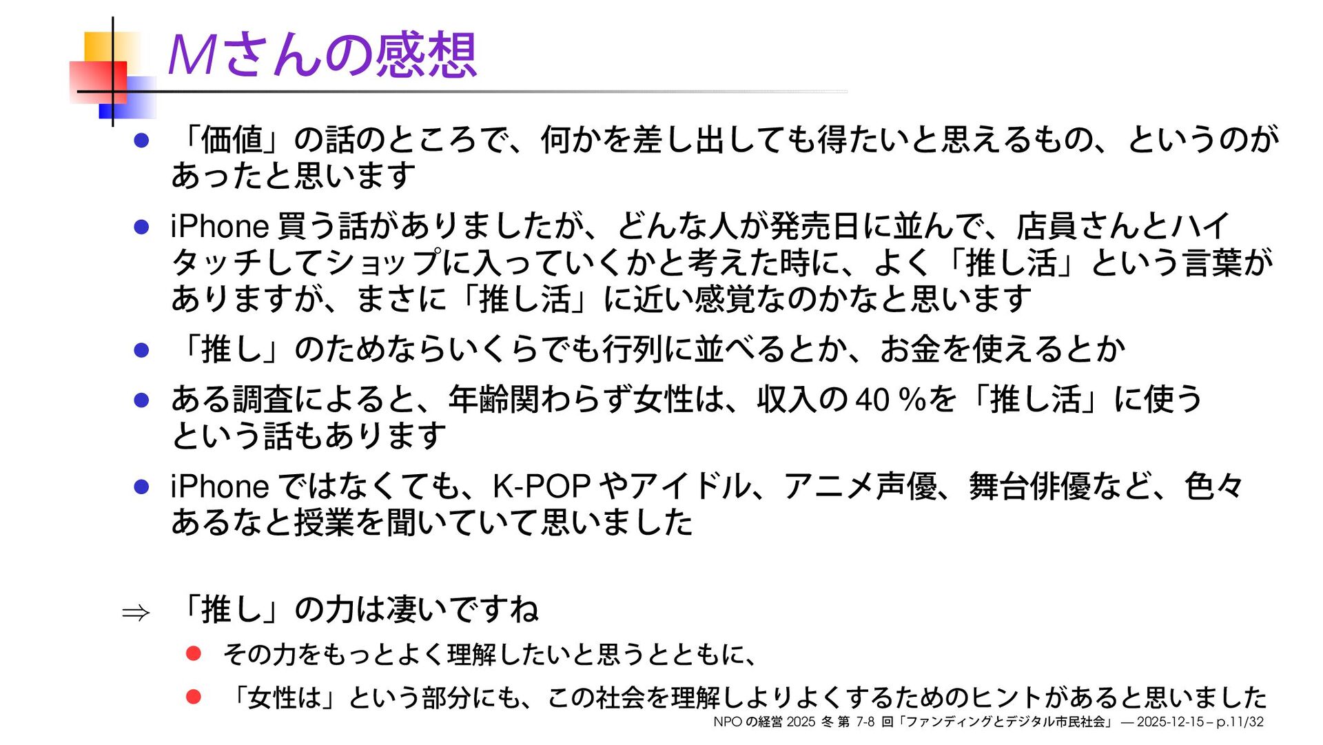 早稲田大学大学院経営管理研究科「NPO の経営」2025 冬の第7-8回で使用したスライドです。