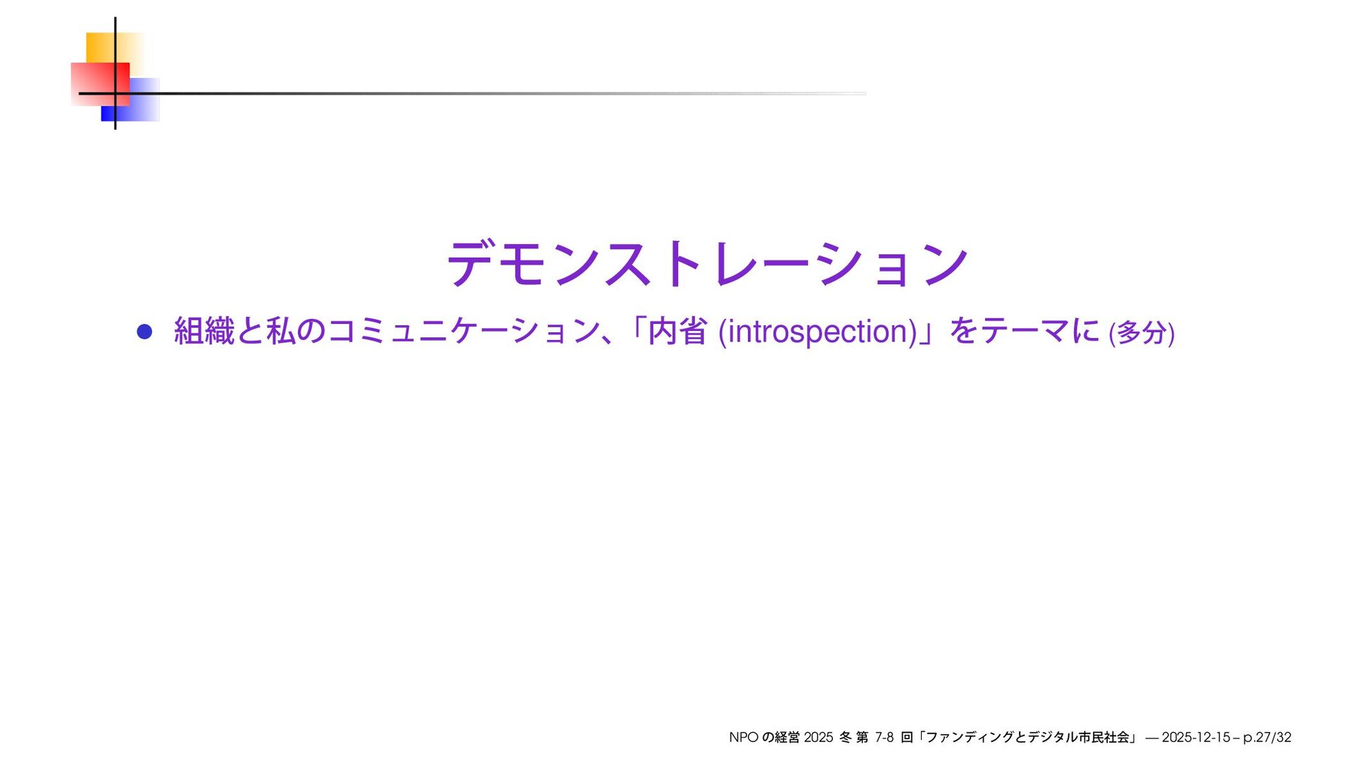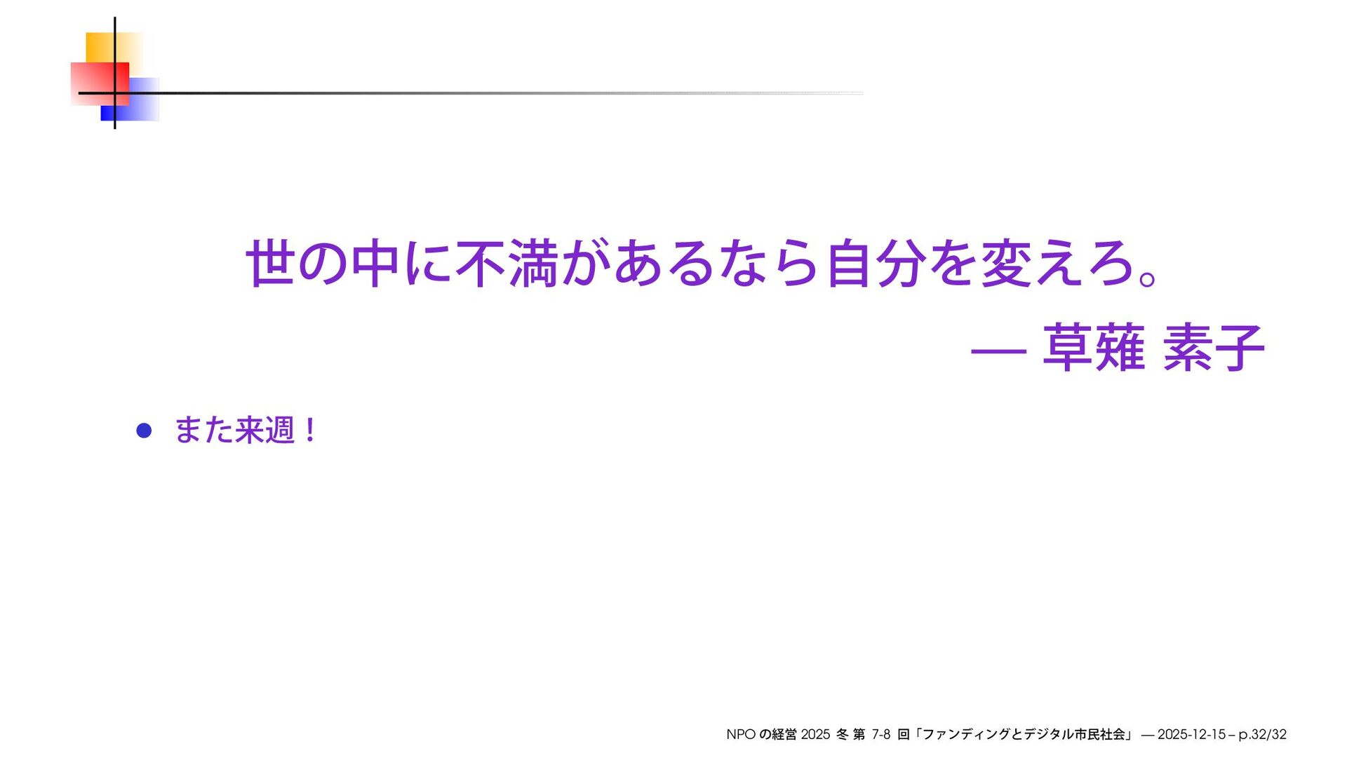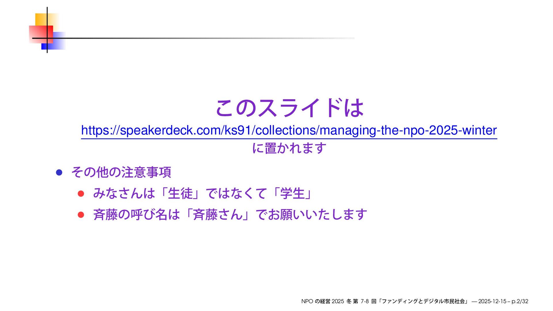 https://speakerdeck.com/ks91/collections/managing-the-npo-2025-winter NPO 2025 7-8 — 2025-12-15 – p.2/32