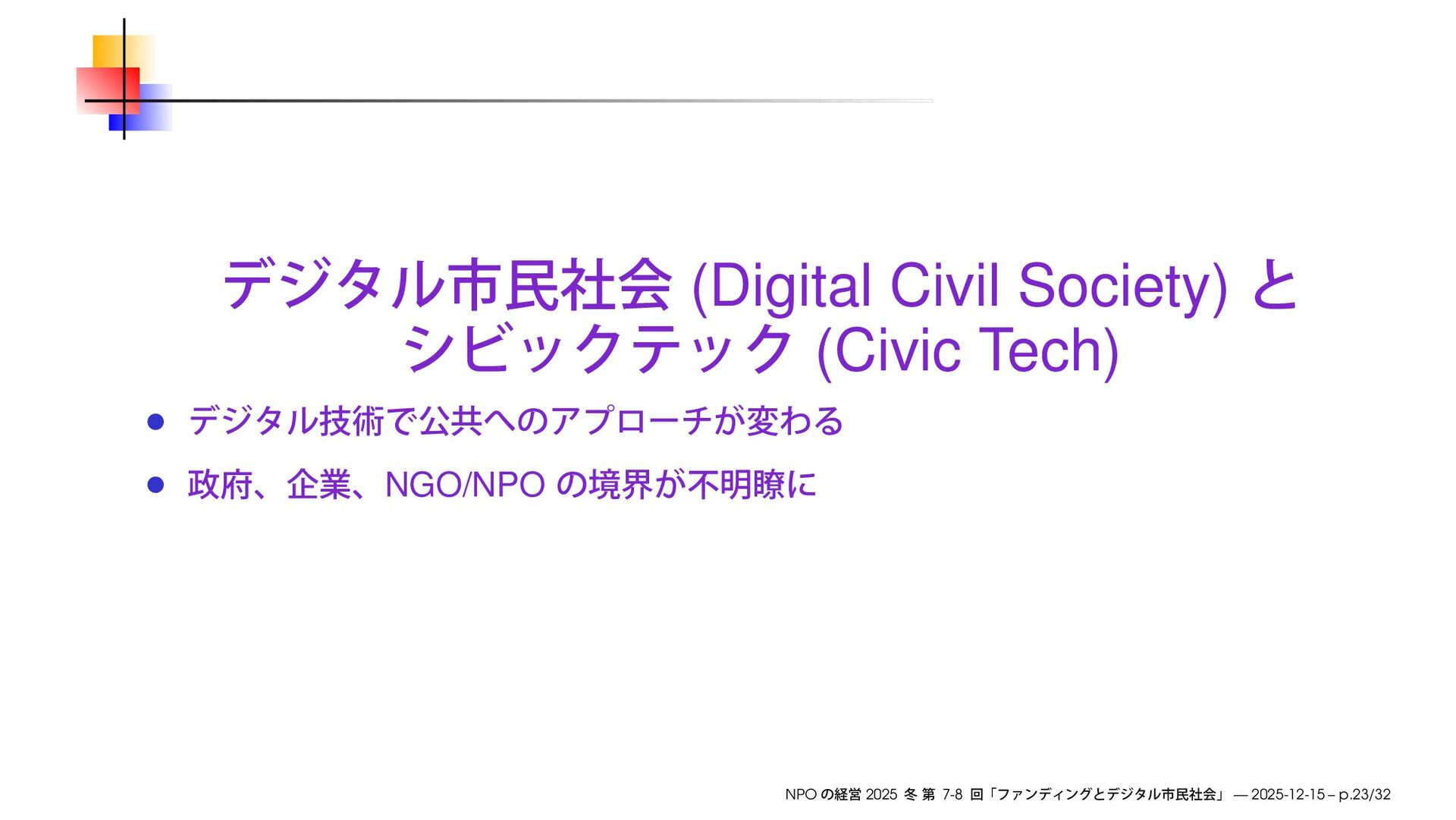 (Digital Civil Society) (Civic Tech) NGO/NPO NPO 2025 7-8 —