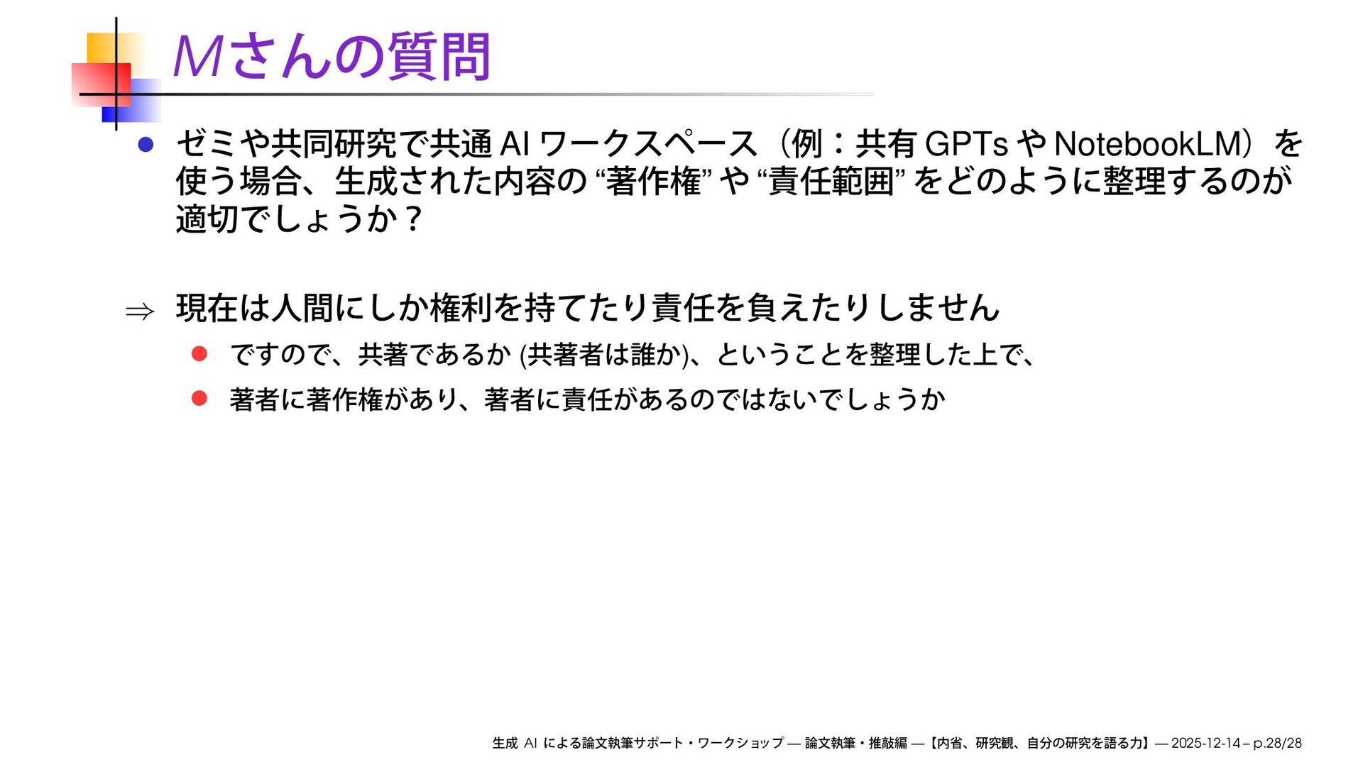 生成AI による論文執筆サポート・ワークショップ 論文執筆・推敲編 / Generative ...