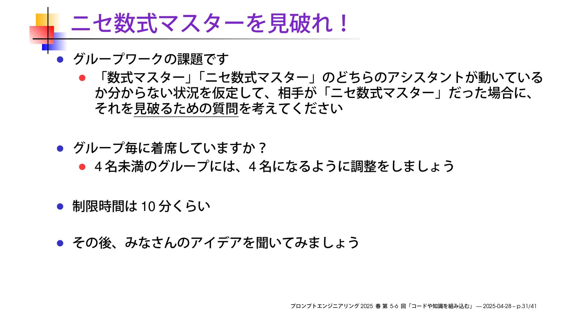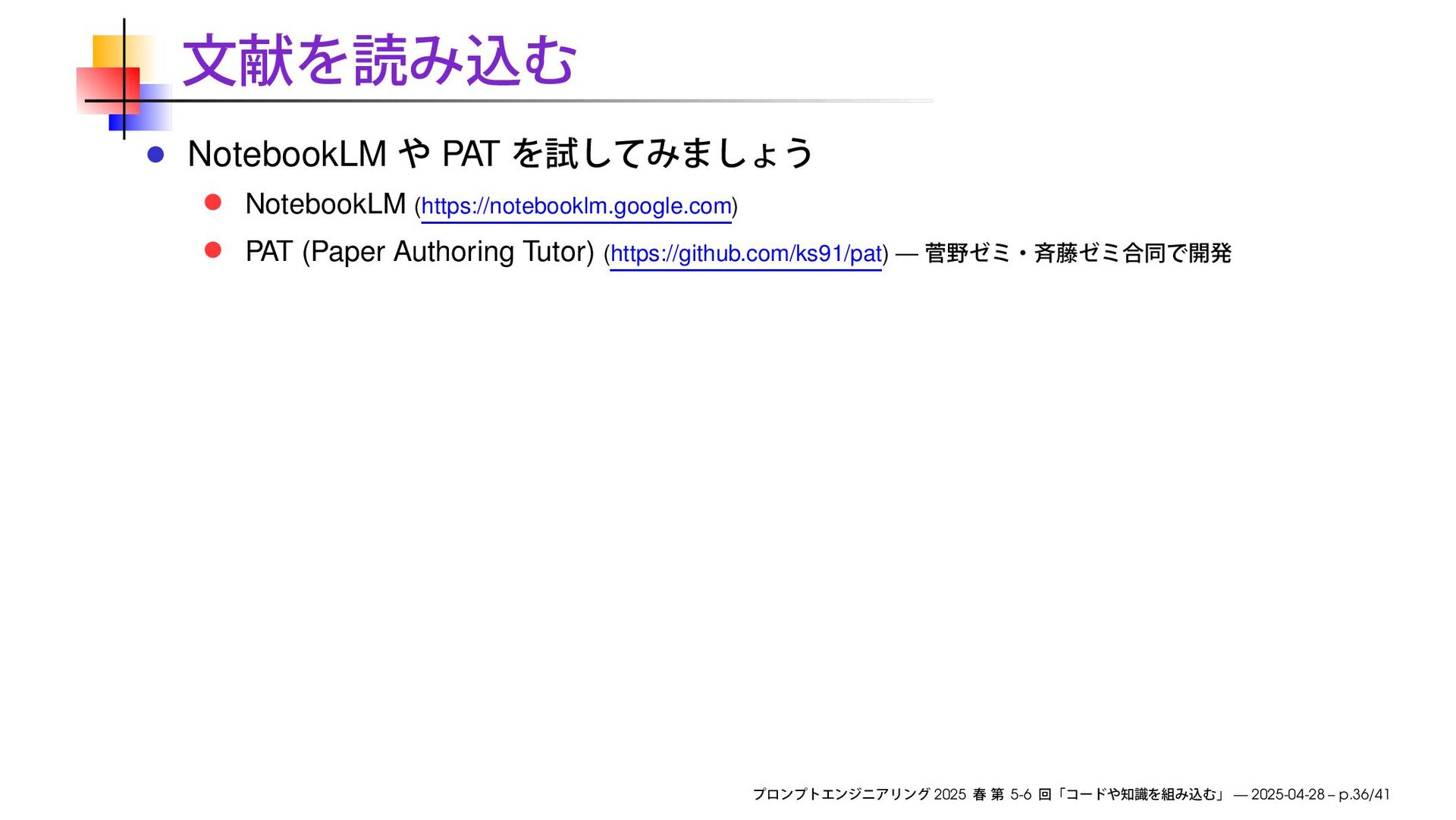 https://speakerdeck.com/ks91/collections/prompt-engineering-2025-spring 2025 5-6 — 2025-04-28 – p.3/41