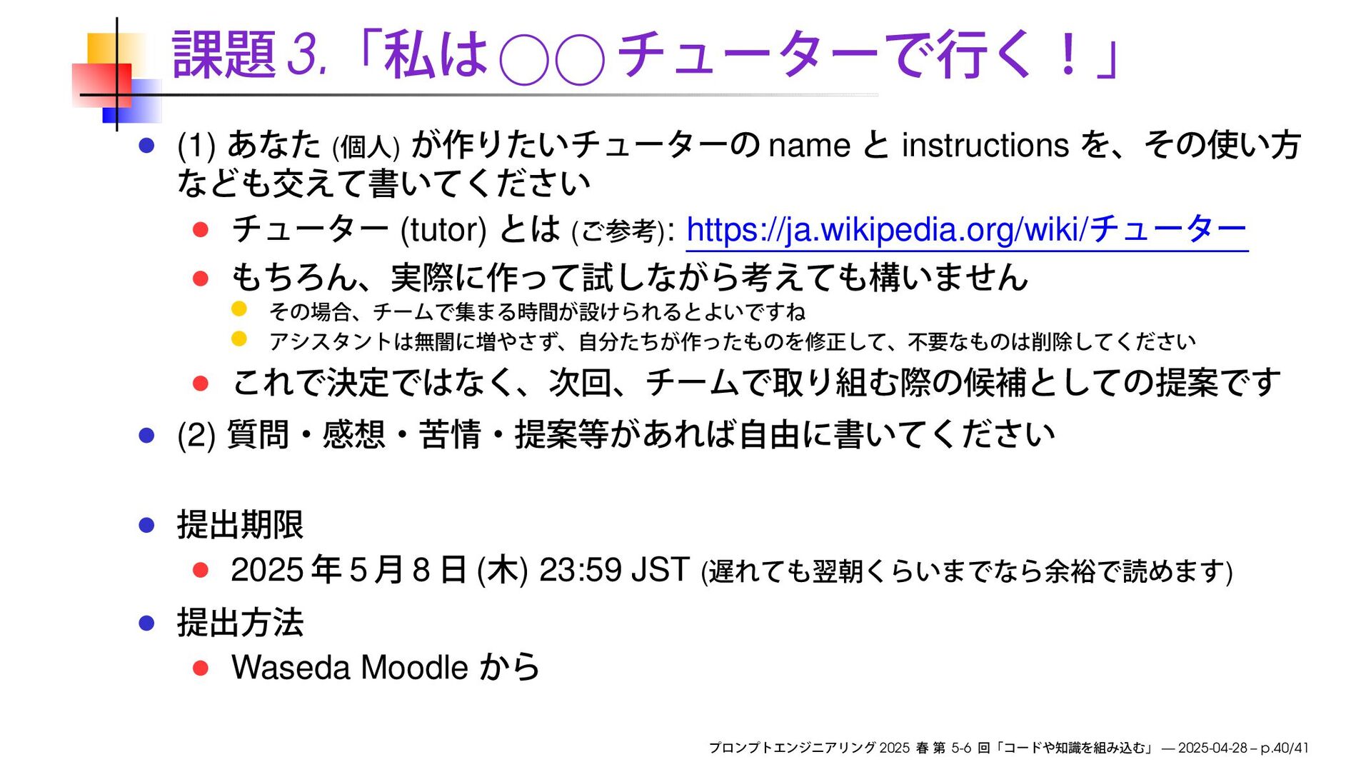 (2) 2025 5 8 ( ) 23:59 JST ( ) Waseda Moodle 2025 5-6 — 2025-04-28 – p.40/41