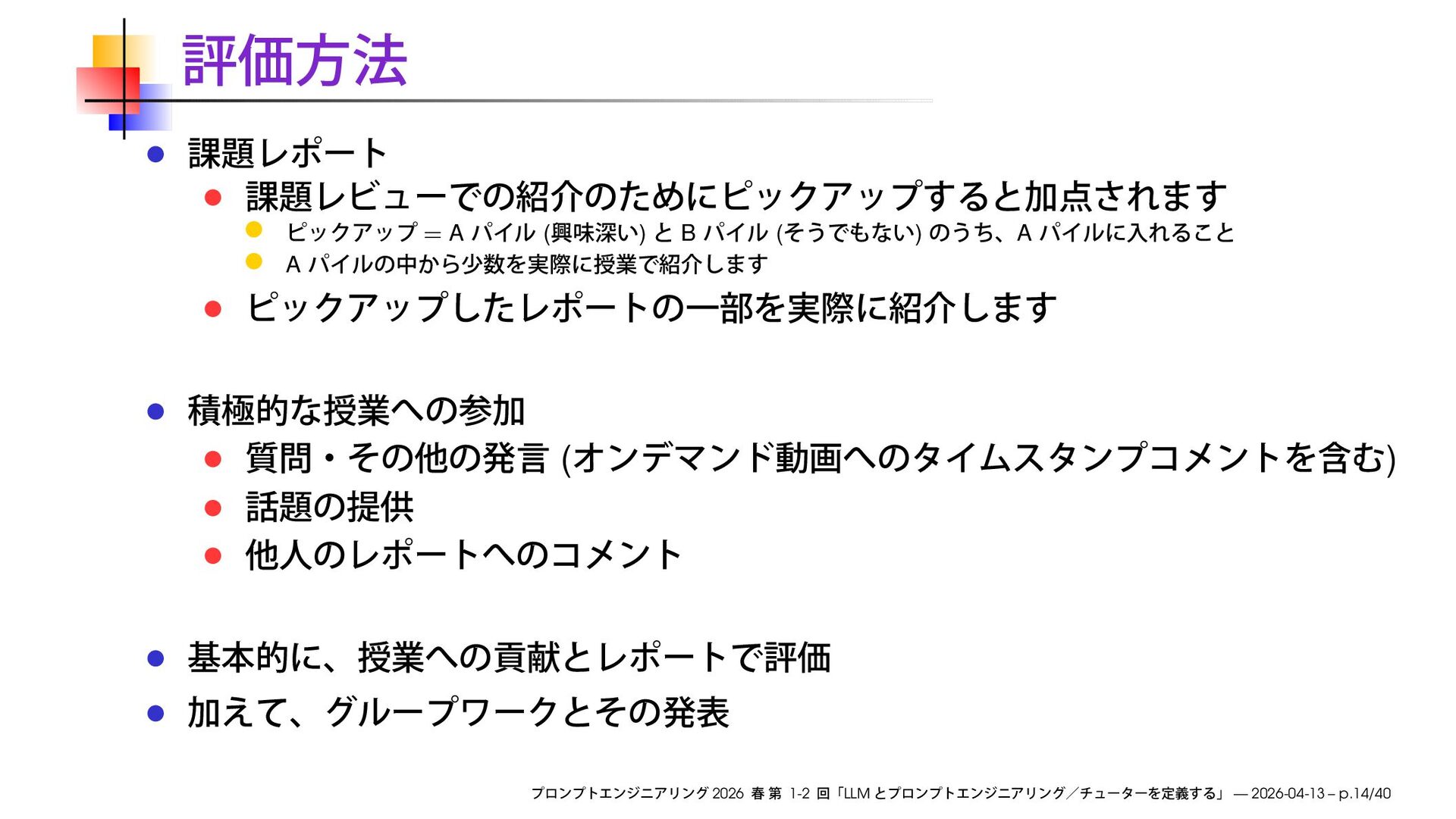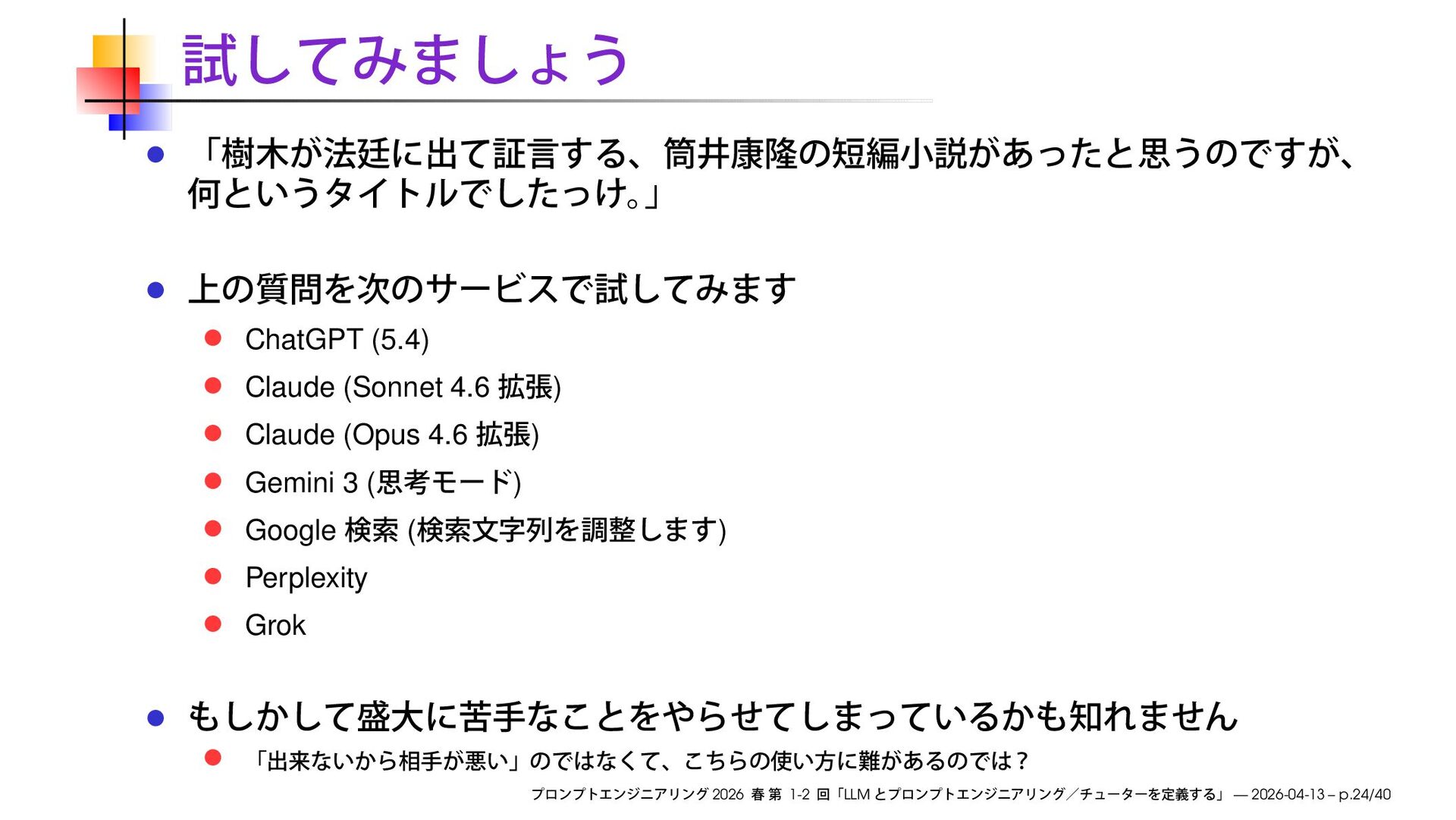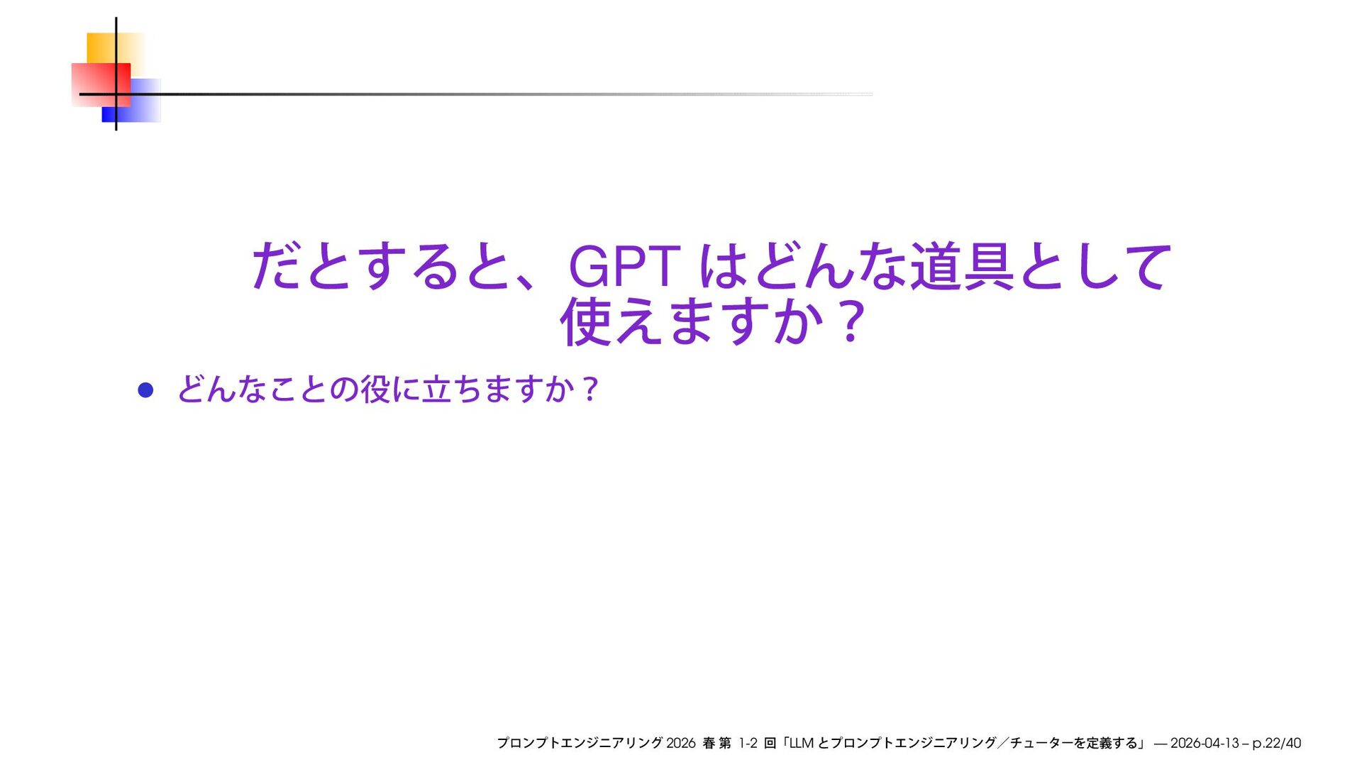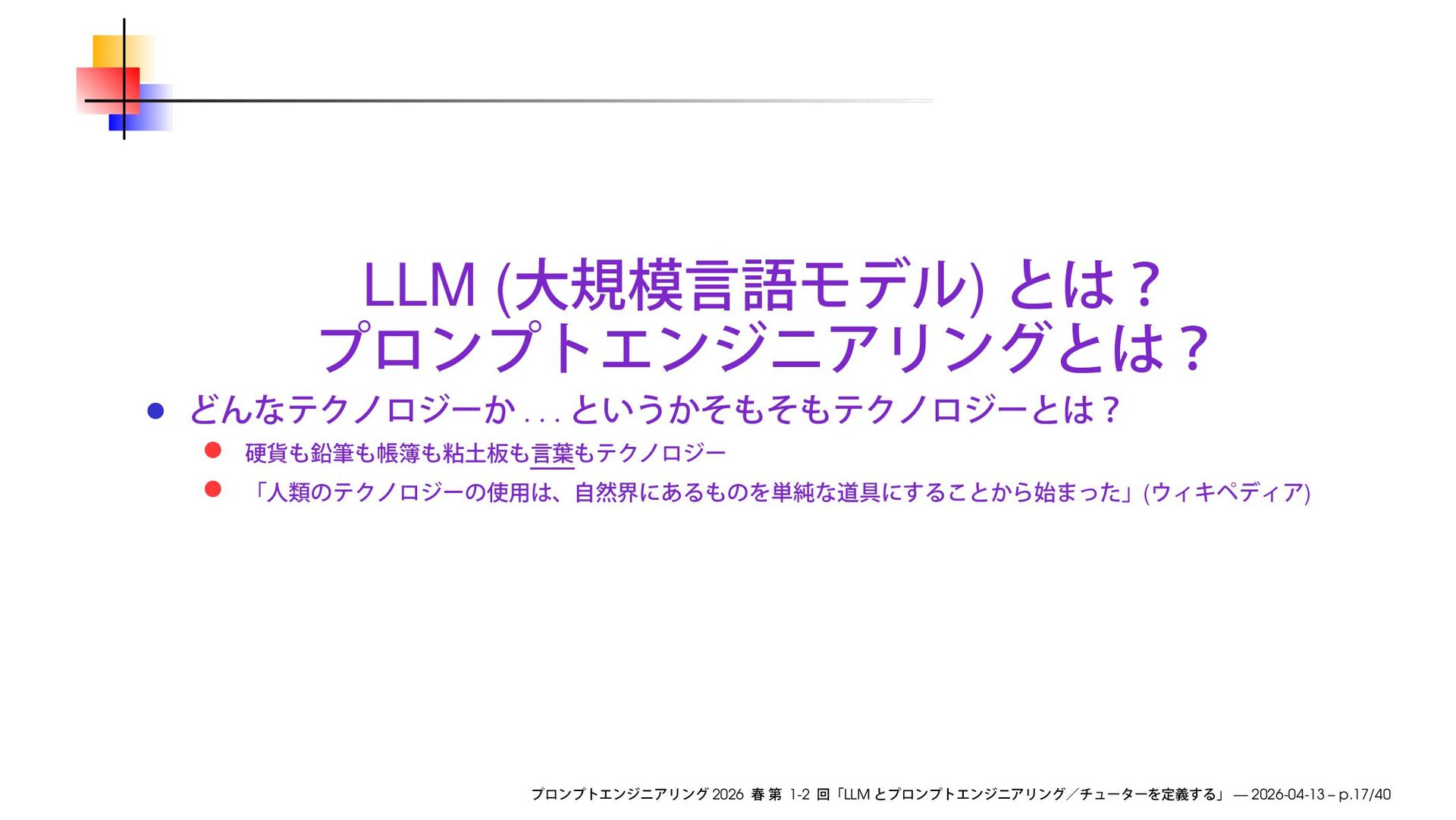 https://speakerdeck.com/ks91/collections/prompt-engineering-2026-spring Discord loglm ( ) 2026 1-2 LLM — 2026-04-13