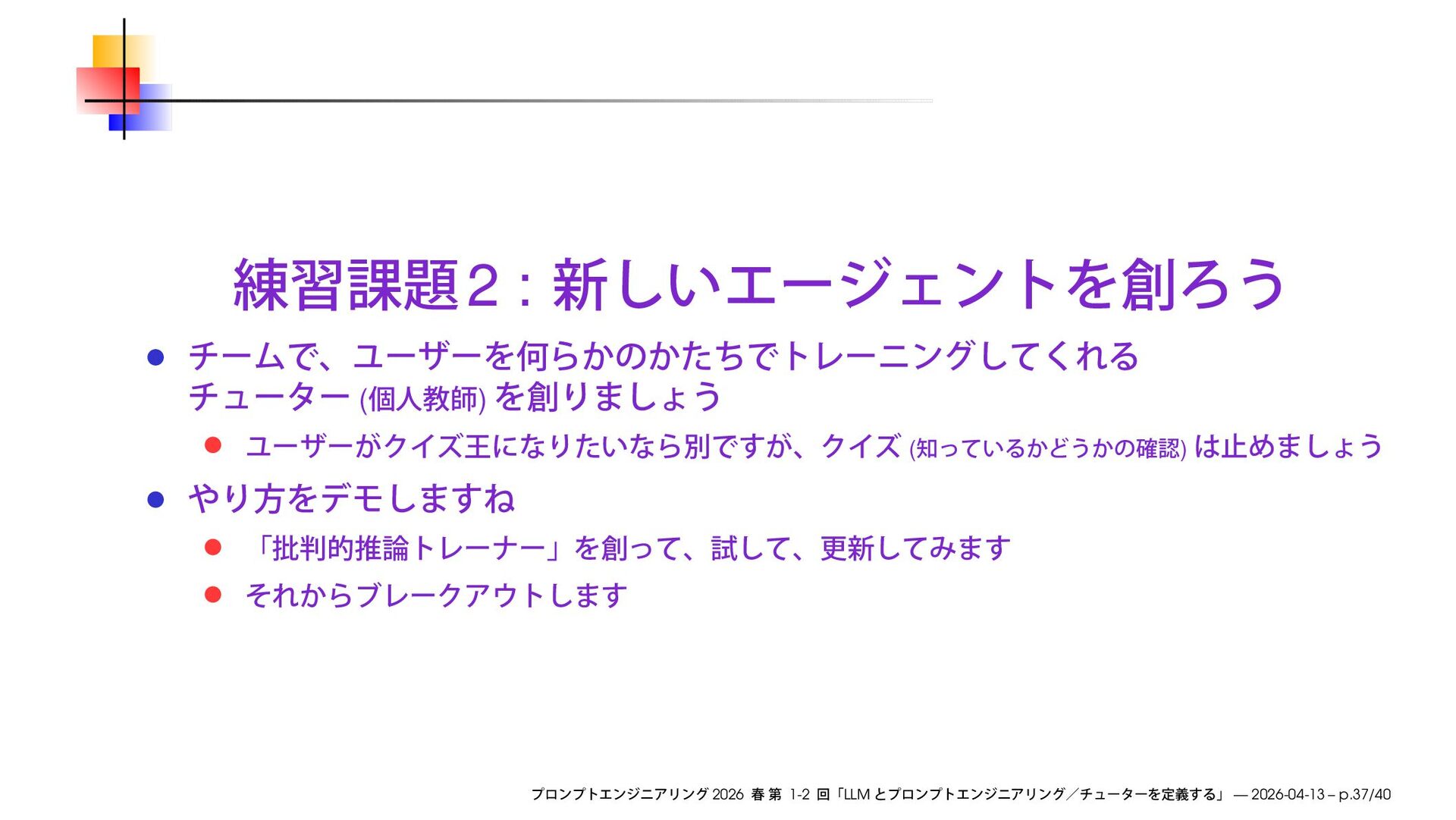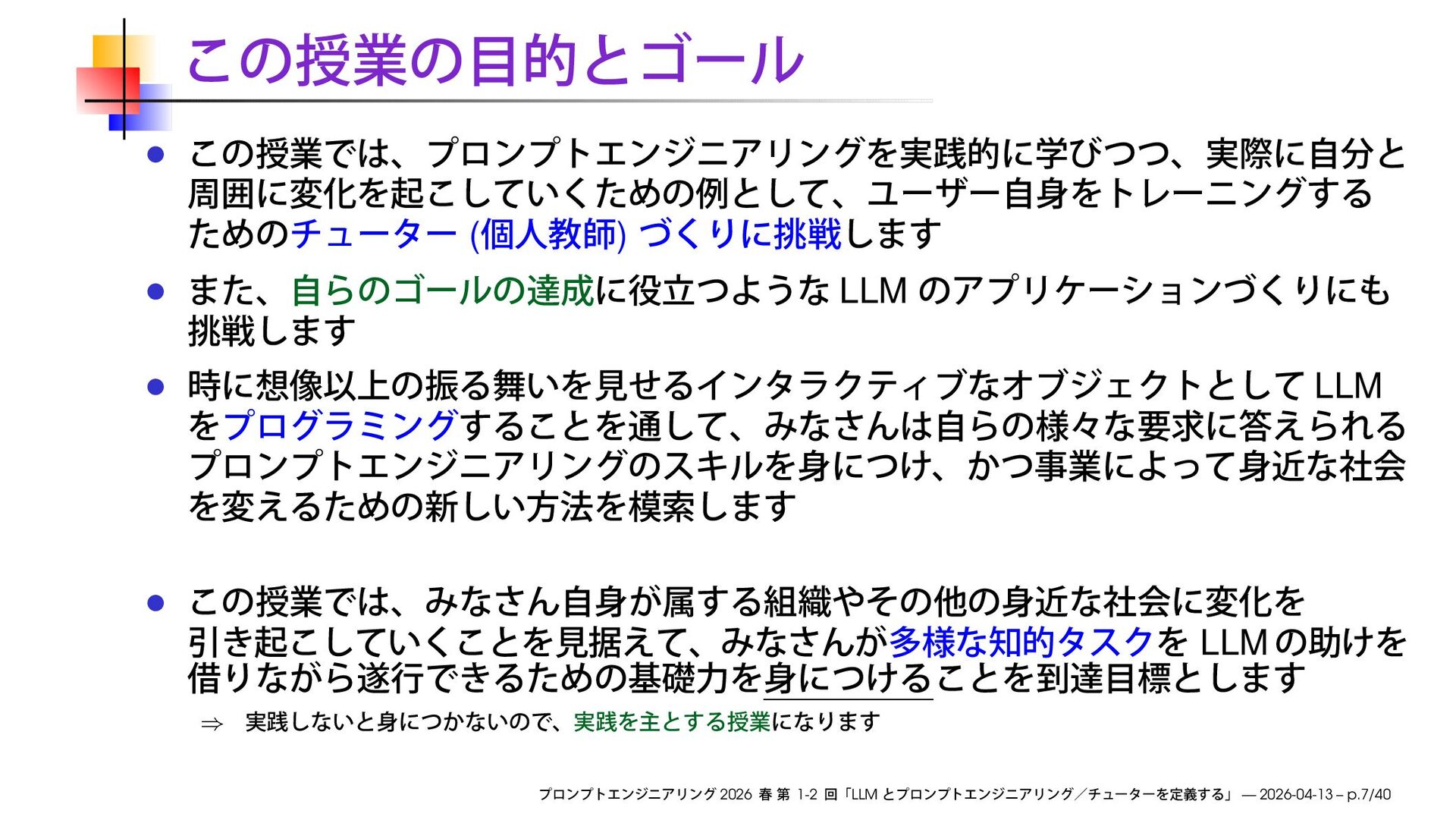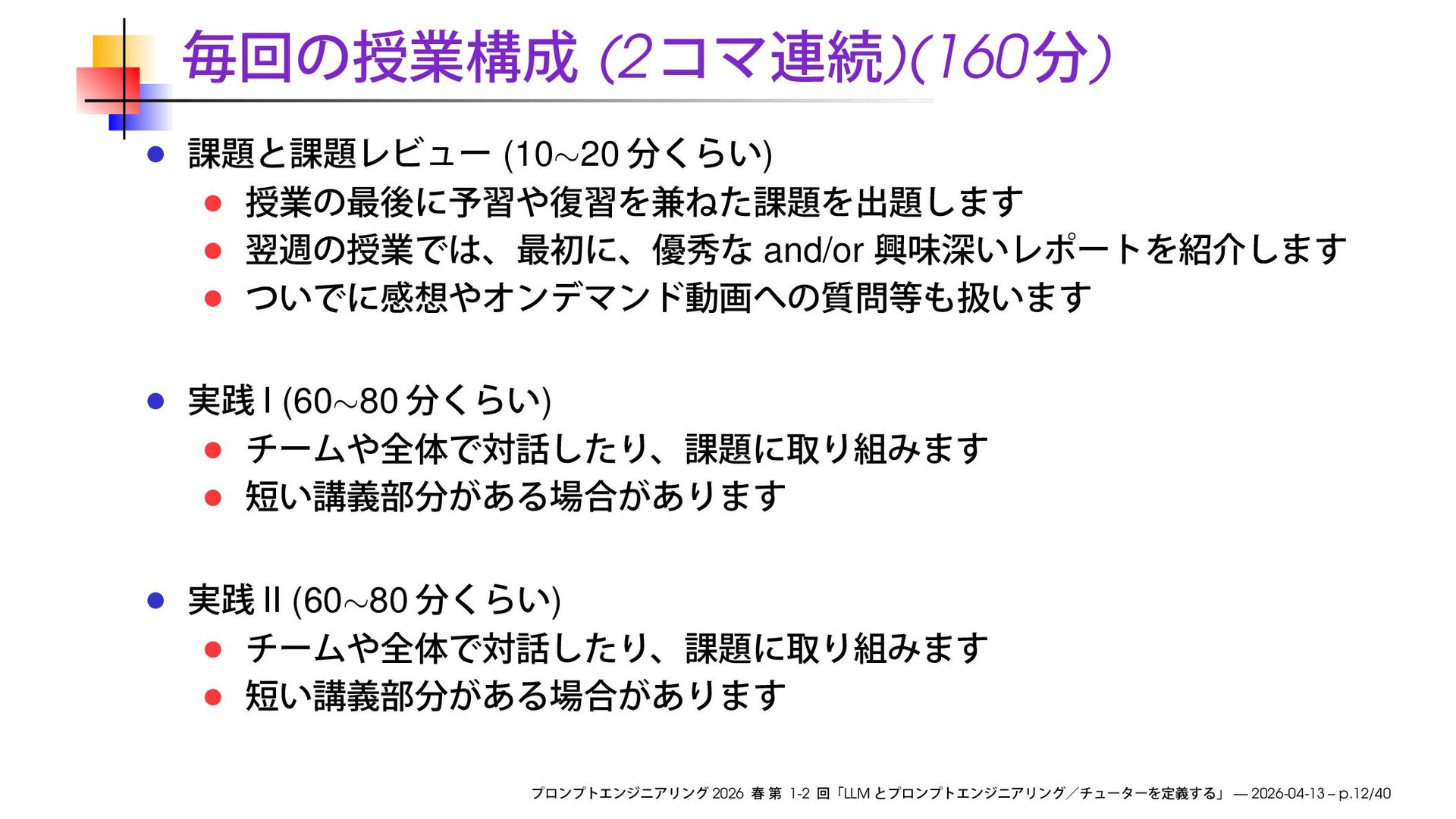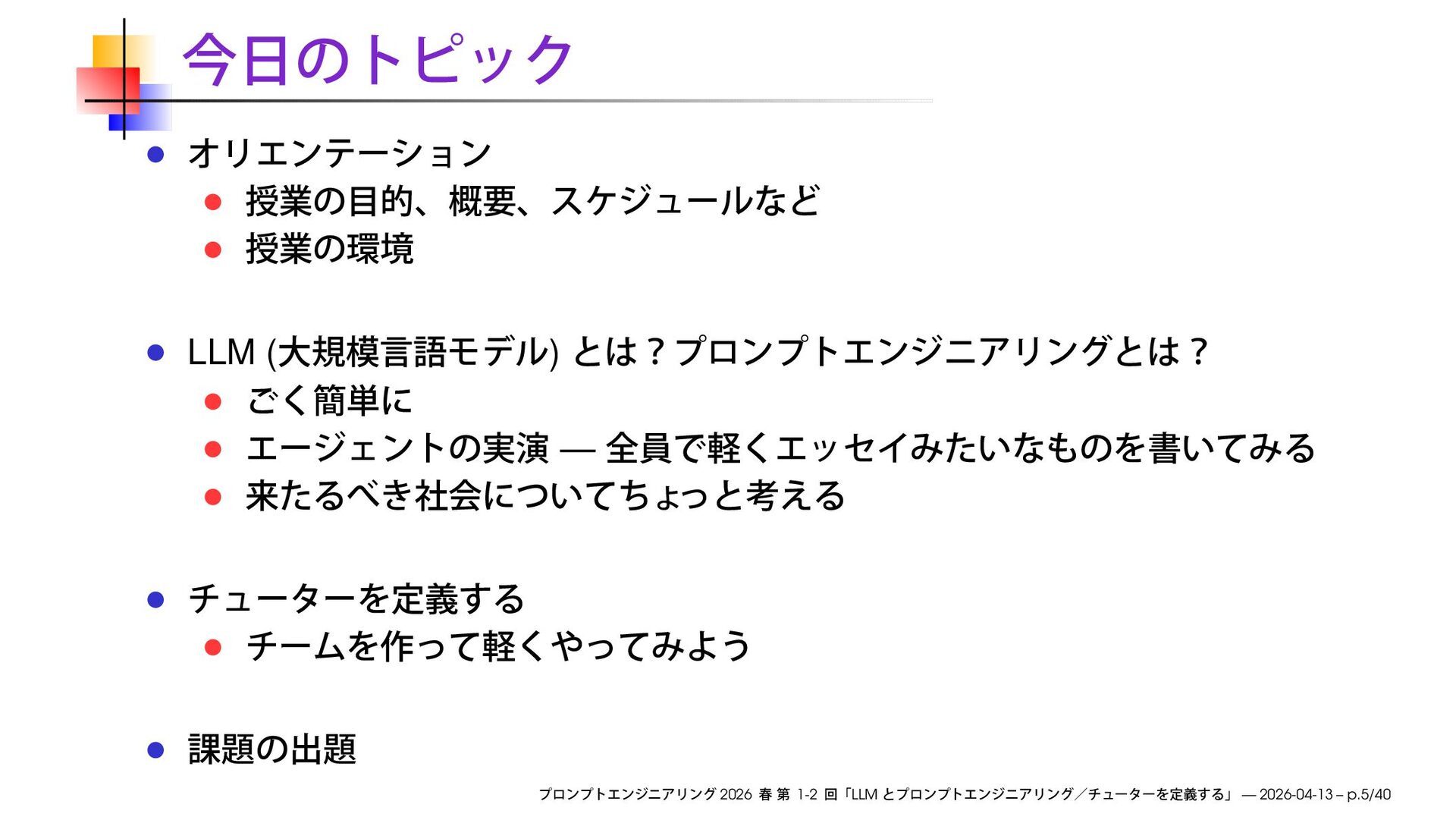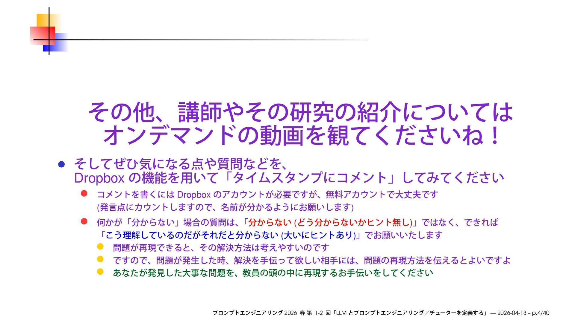 https://speakerdeck.com/ks91/collections/prompt-engineering-2026-spring Discord loglm ( ) 2026 1-2 LLM — 2026-04-13