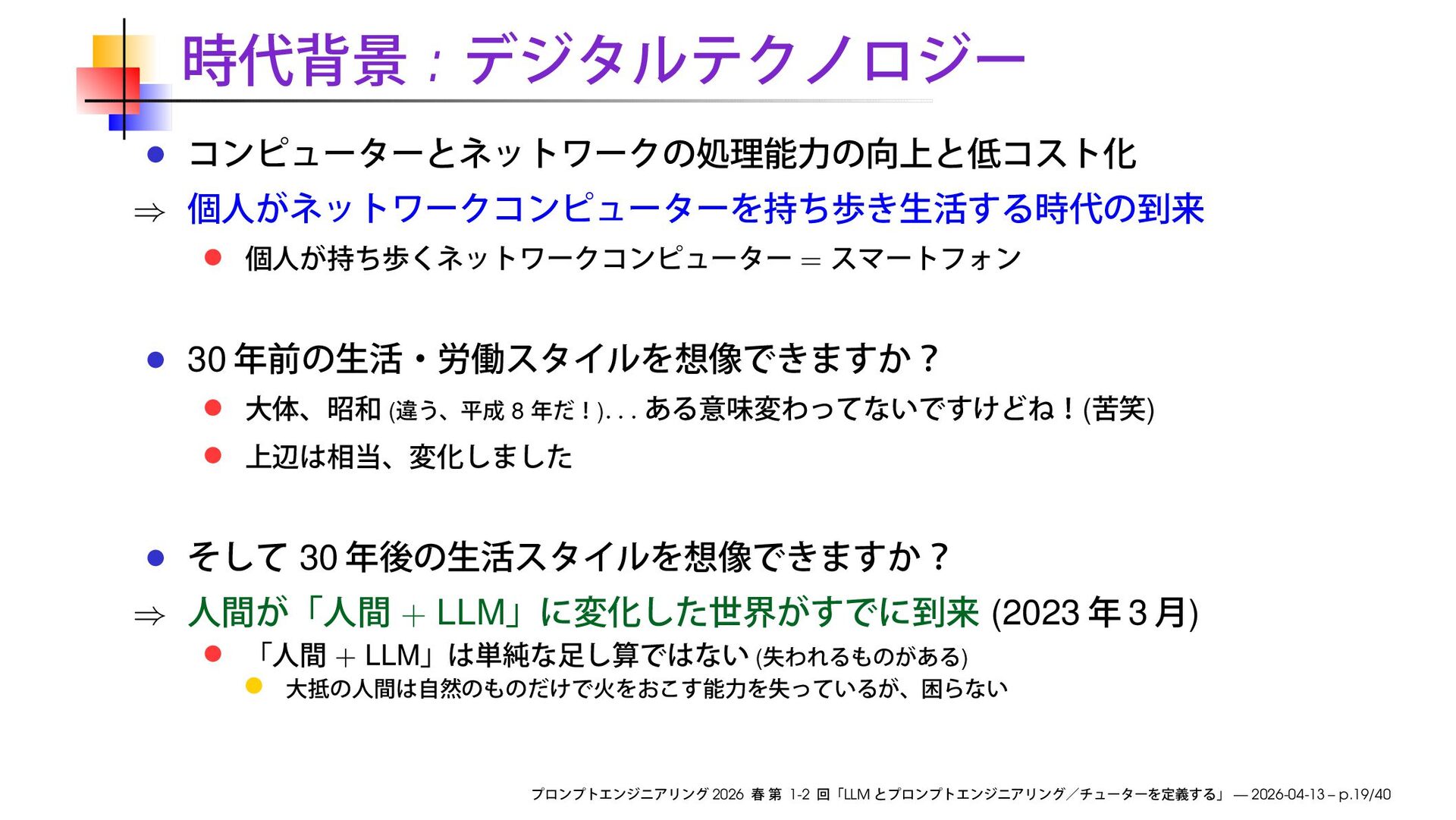 ) 30 ⇒ + LLM (2023 3 ) + LLM ( ) 2026 1-2 LLM — 2026-04-13 – p.19/40