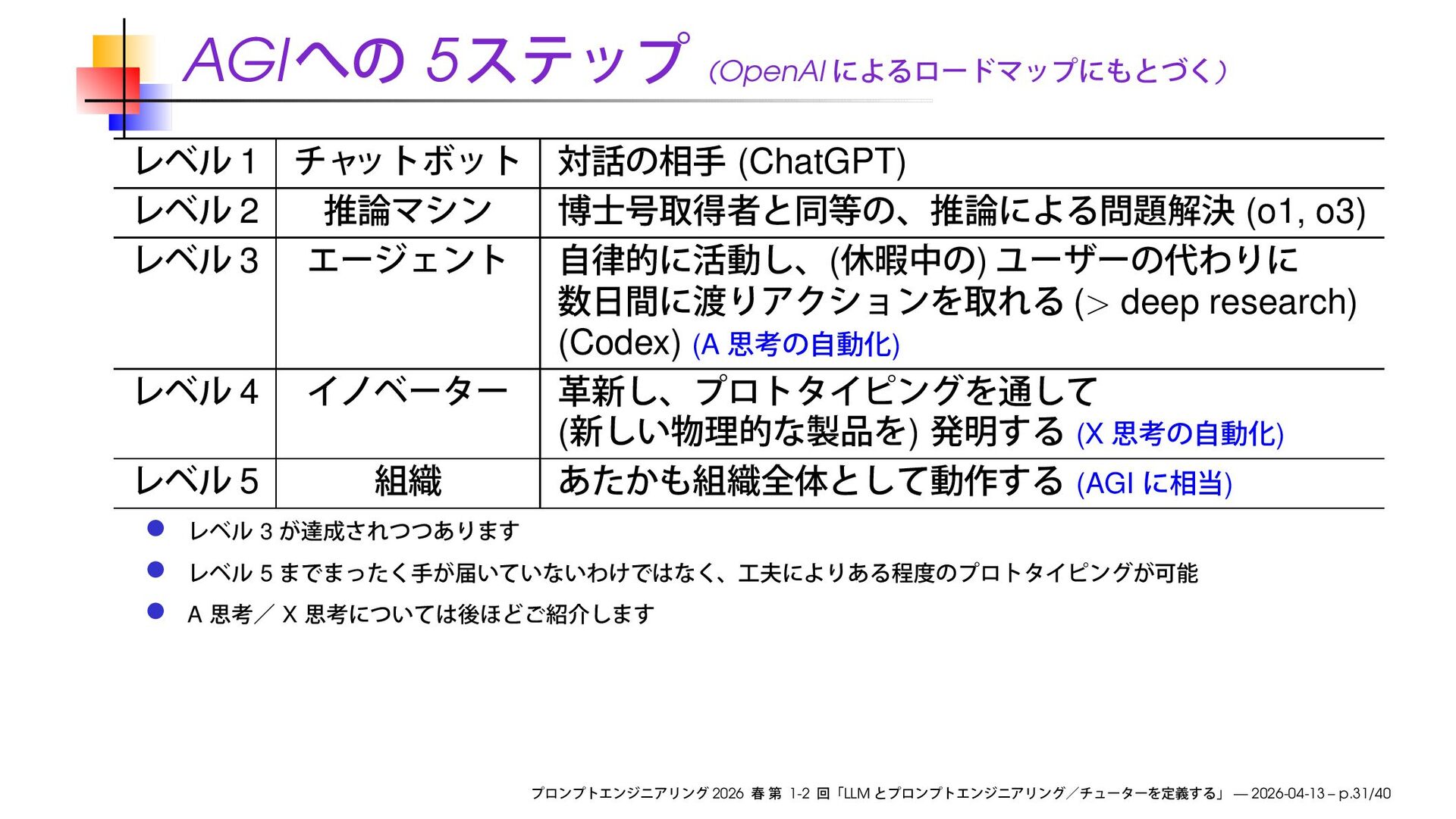 ( ) (> deep research) (Codex) (A ) 4 ( ) (X ) 5 (AGI ) 3 5 A X 2026 1-2 LLM — 2026-04-13 – p.31/40