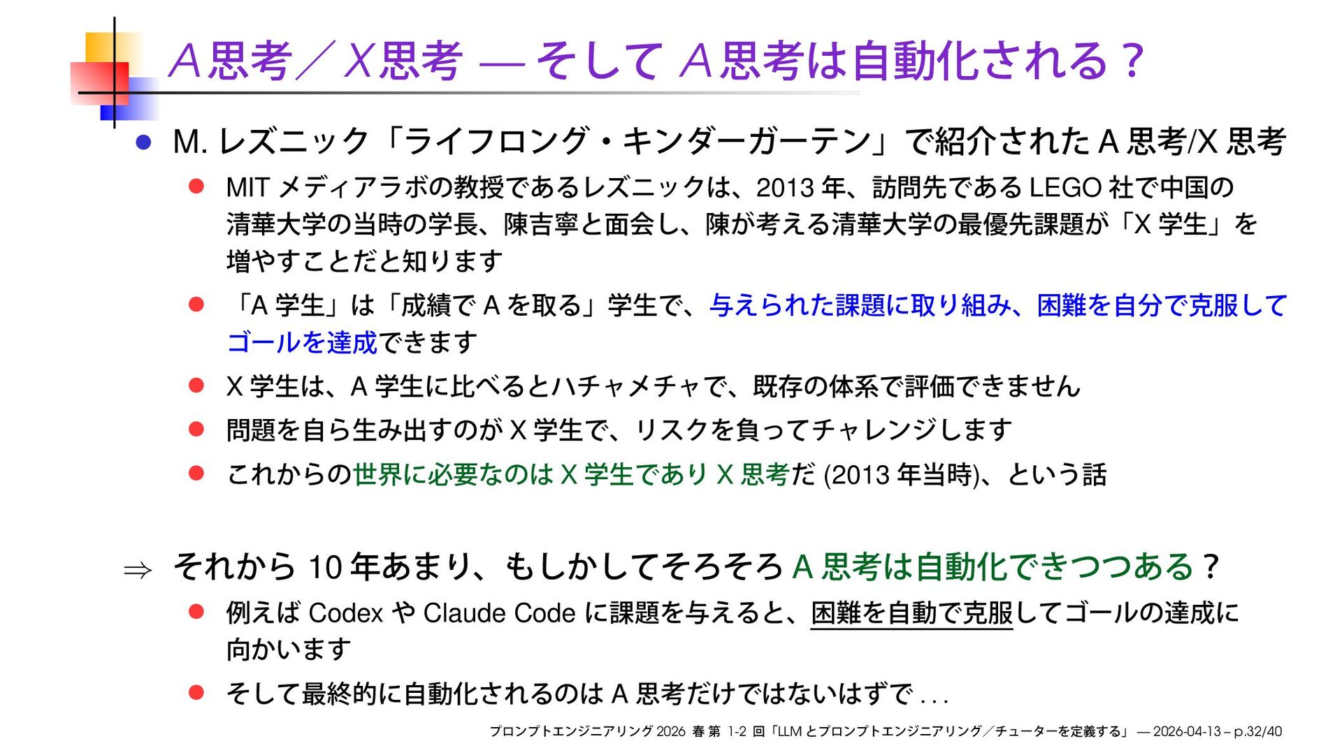 X A A X A X X X (2013 ) ⇒ 10 A Codex Claude Code A . . . 2026 1-2 LLM — 2026-04-13 – p.32/40