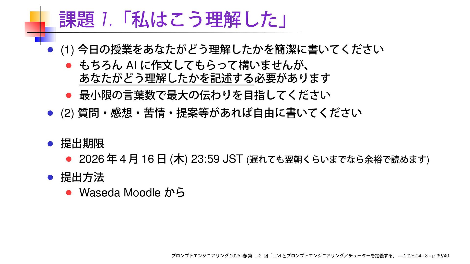 JST ( ) Waseda Moodle 2026 1-2 LLM — 2026-04-13 – p.39/40