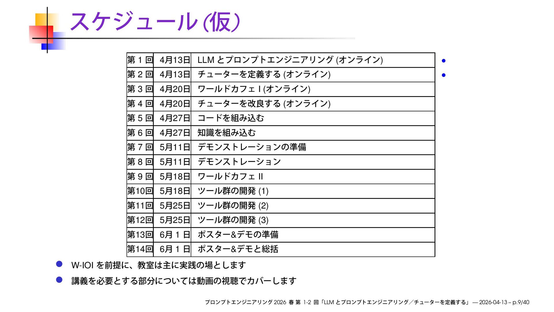 4 13 ( ) • 3 4 20 I ( ) 4 4 20 ( ) 5 4 27 6 4 27 7 5 11 8 5 11 9 5 18 II 10 5 18 (1) 11 5 25 (2) 12 5 25 (3) 13 6 1 & 14 6 1 & W-IOI 2026 1-2 LLM — 2026-04-13 – p.9/40