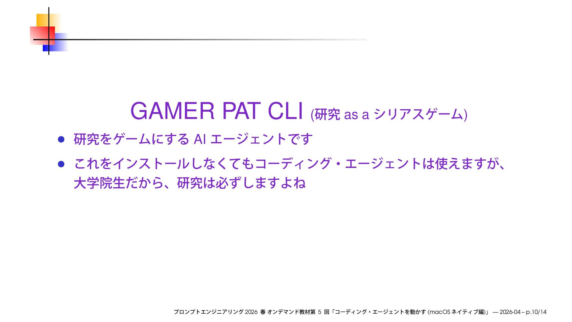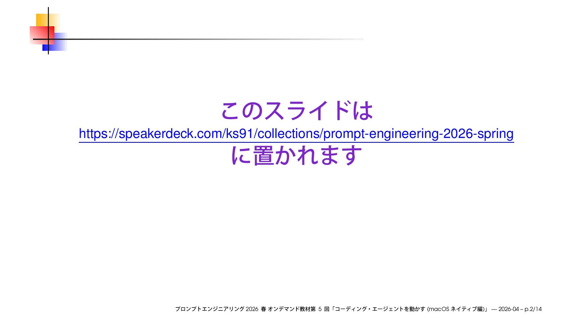 https://speakerdeck.com/ks91/collections/prompt-engineering-2026-spring 2026 5 (macOS ) — 2026-04 – p.2/14