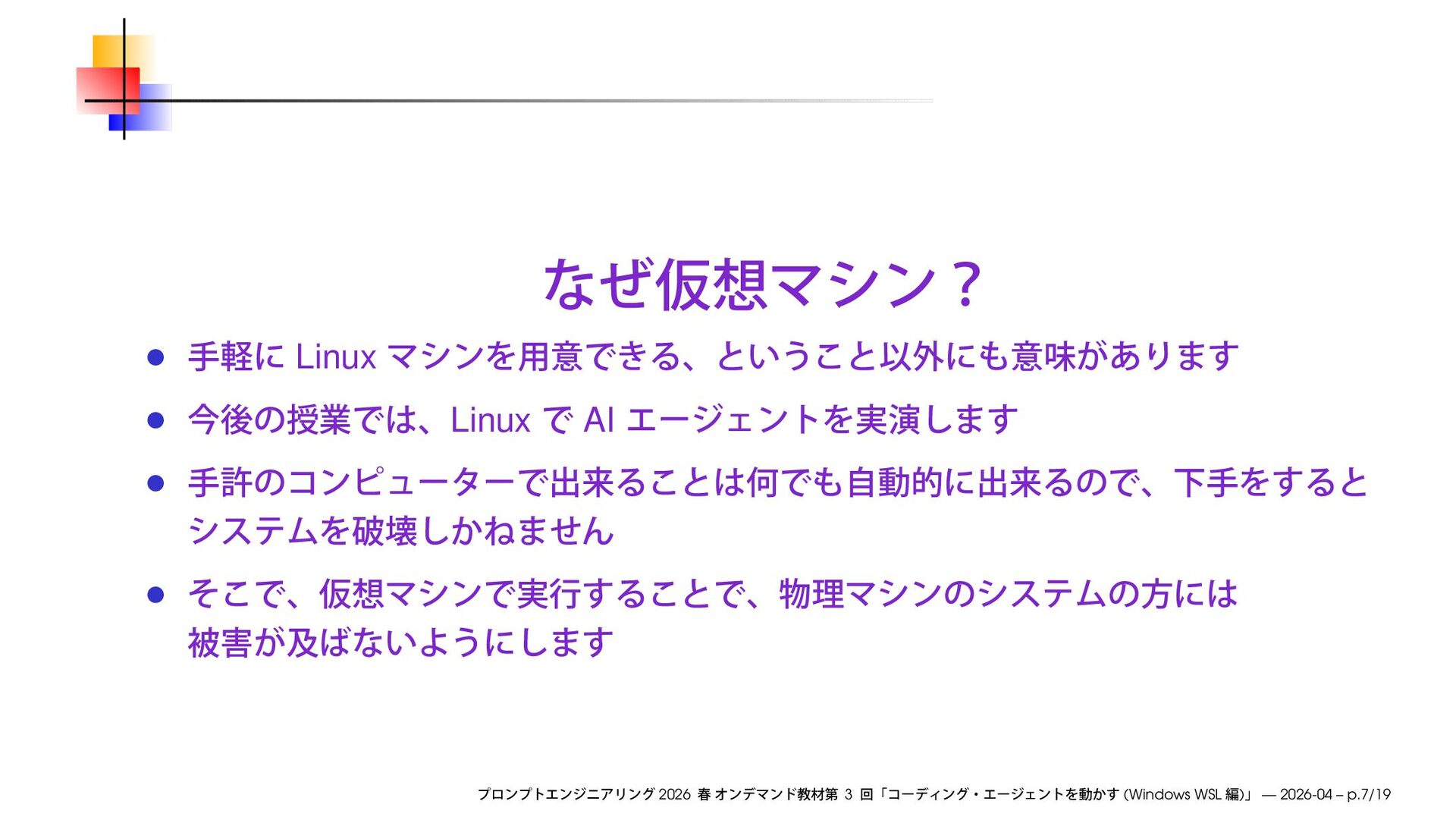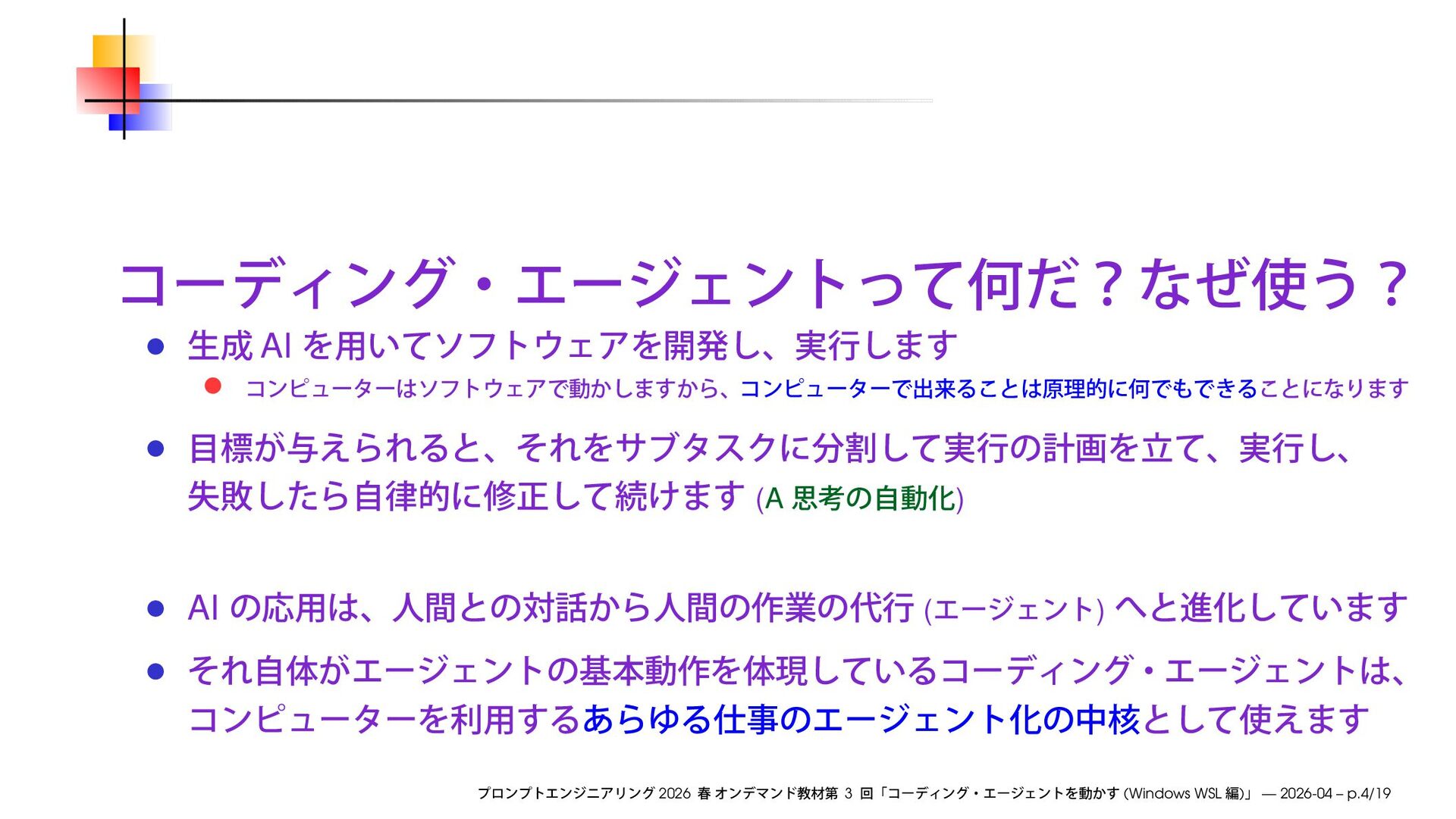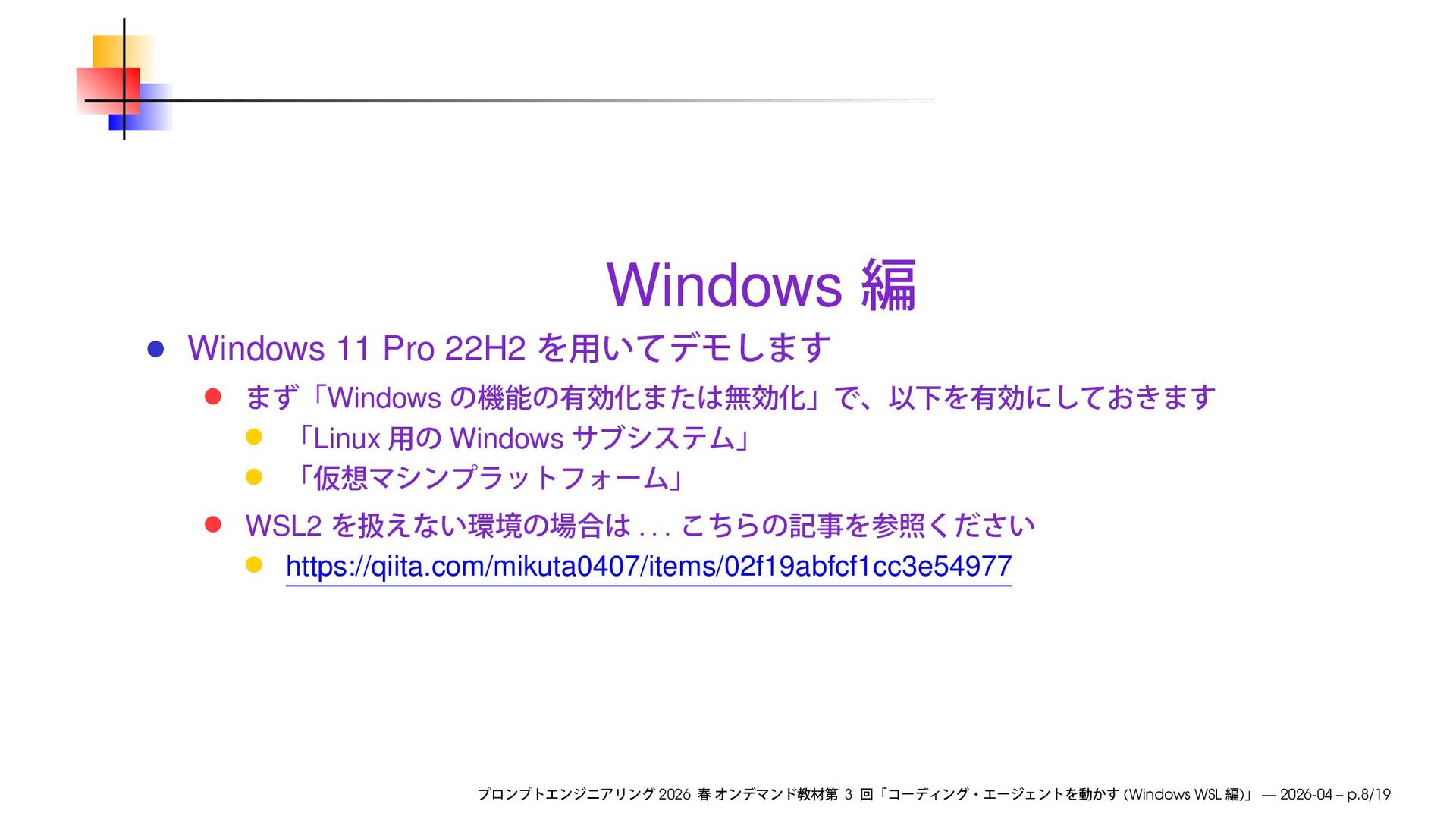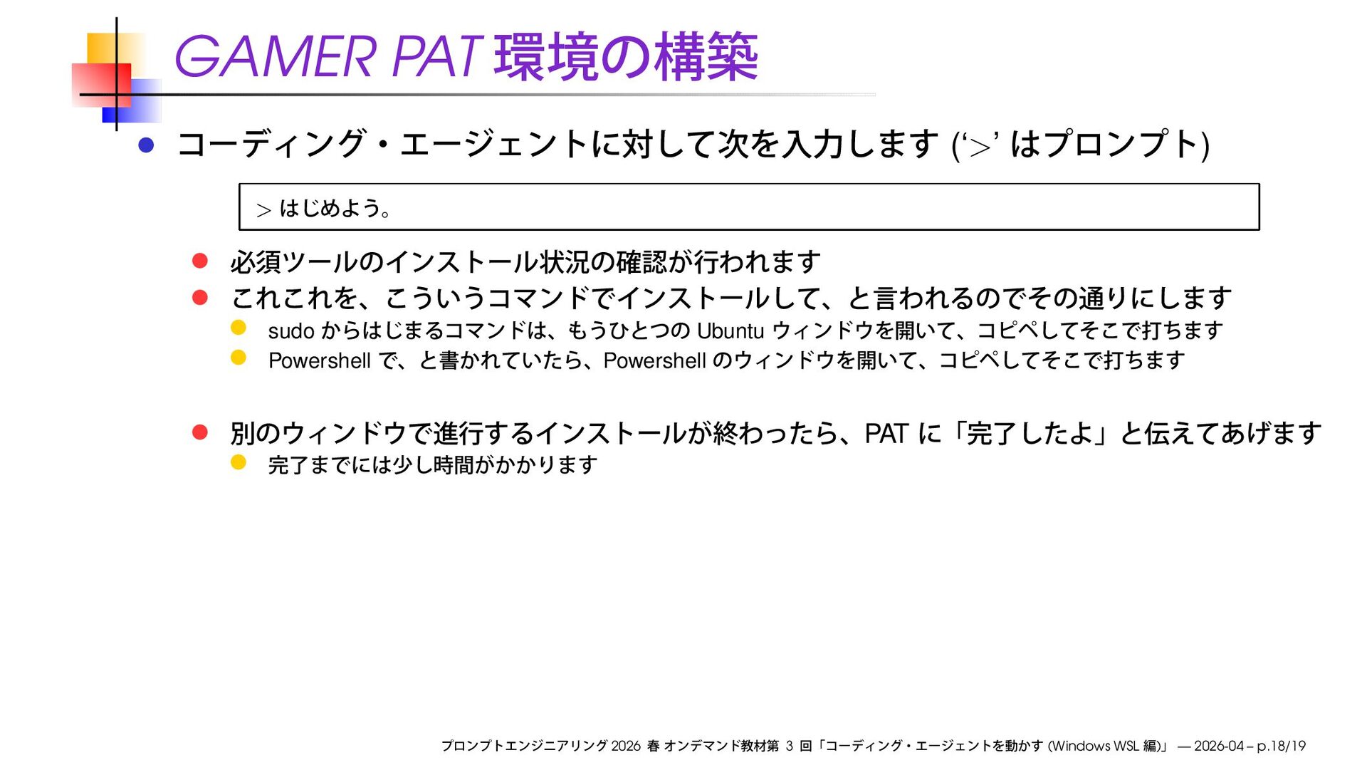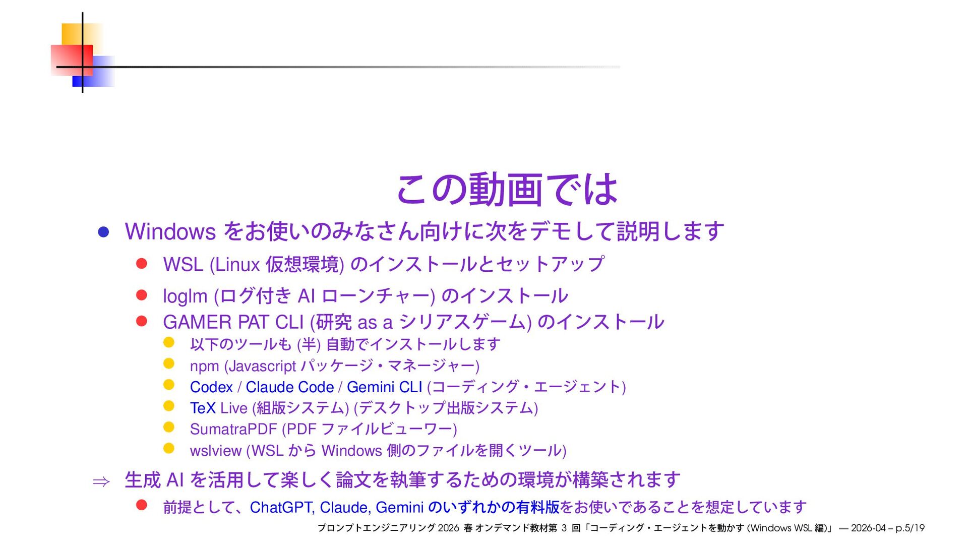https://speakerdeck.com/ks91/collections/prompt-engineering-2026-spring 2026 3 (Windows WSL ) — 2026-04 – p.2/19