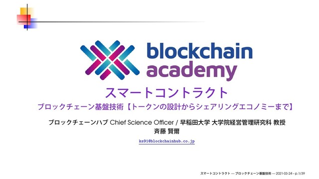 2021年3月24日(水)、ブロックチェーンハブ主催のブロックチェーンアカデミー「スマートコントラクト」にて使用したスライドです。