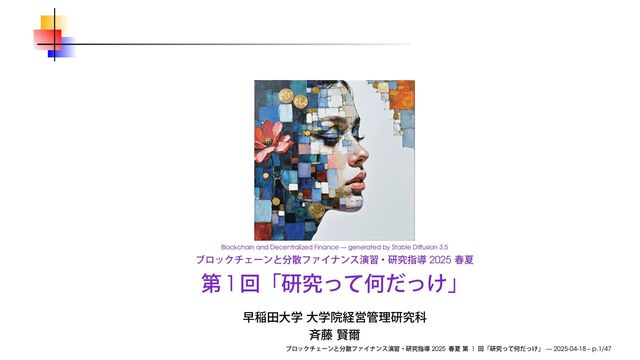 早稲田大学大学院経営管理研究科「ブロックチェーンと分散ファイナンス演習・研究指導」2025 春の第1回で使用したスライドです。